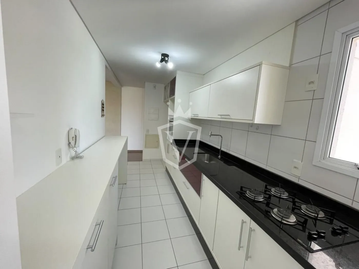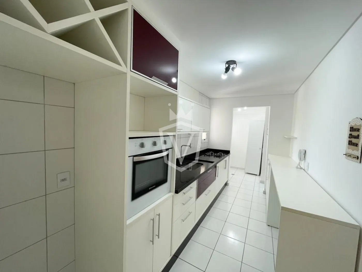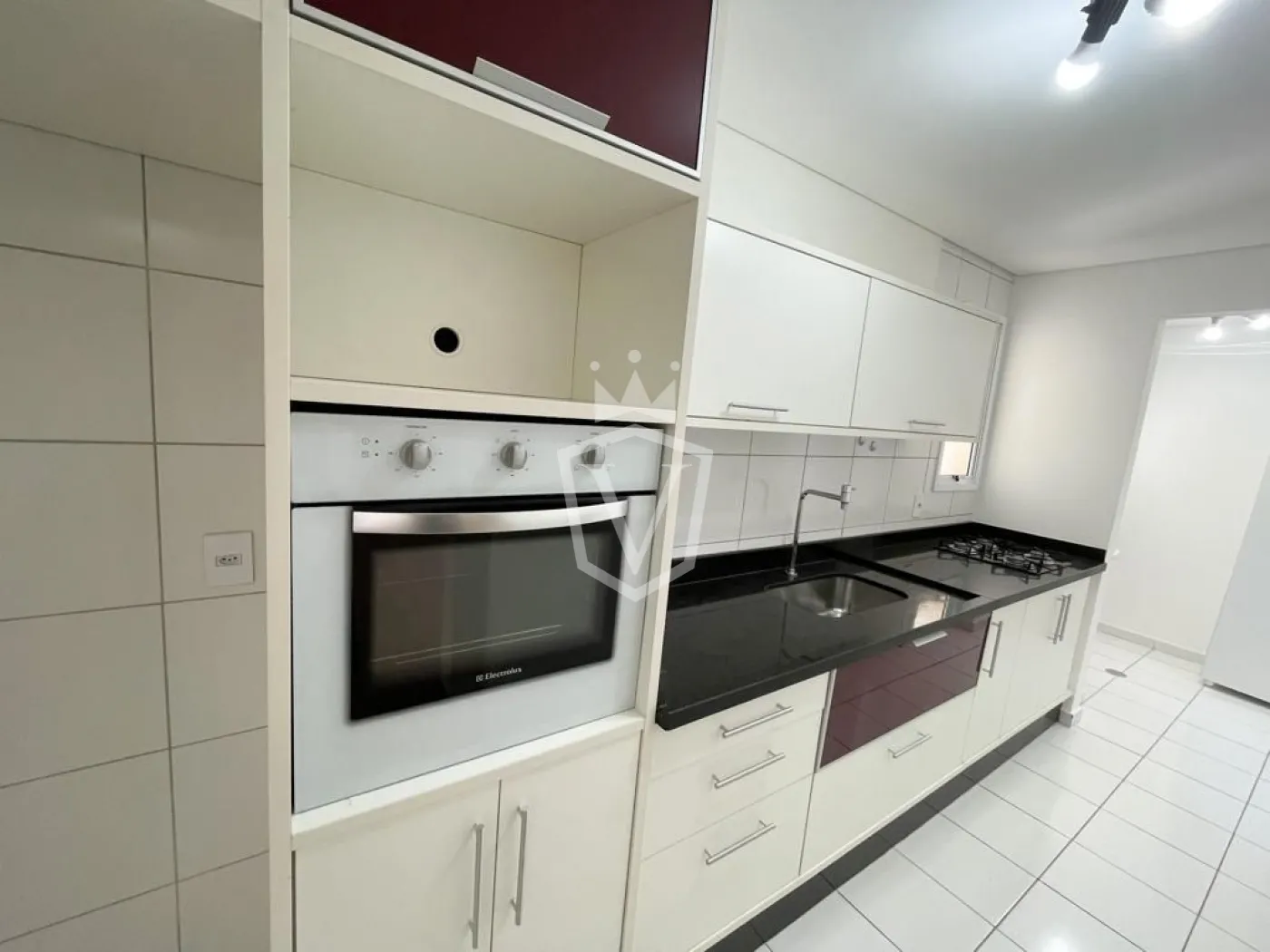 - Cozinha com armários, cooktop e forno elétrico