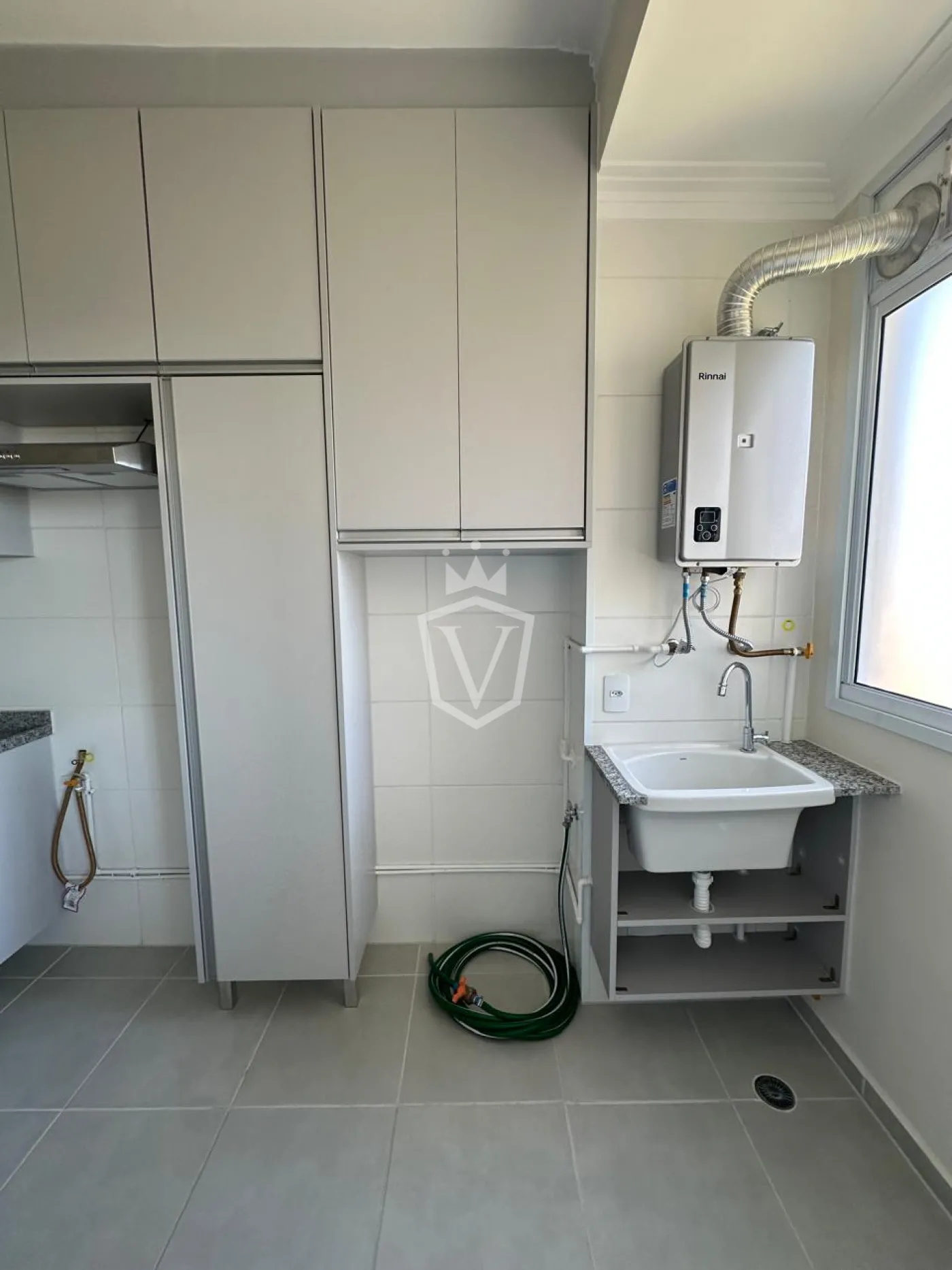 - Lavanderia com armário e aquecedor a gás instalado