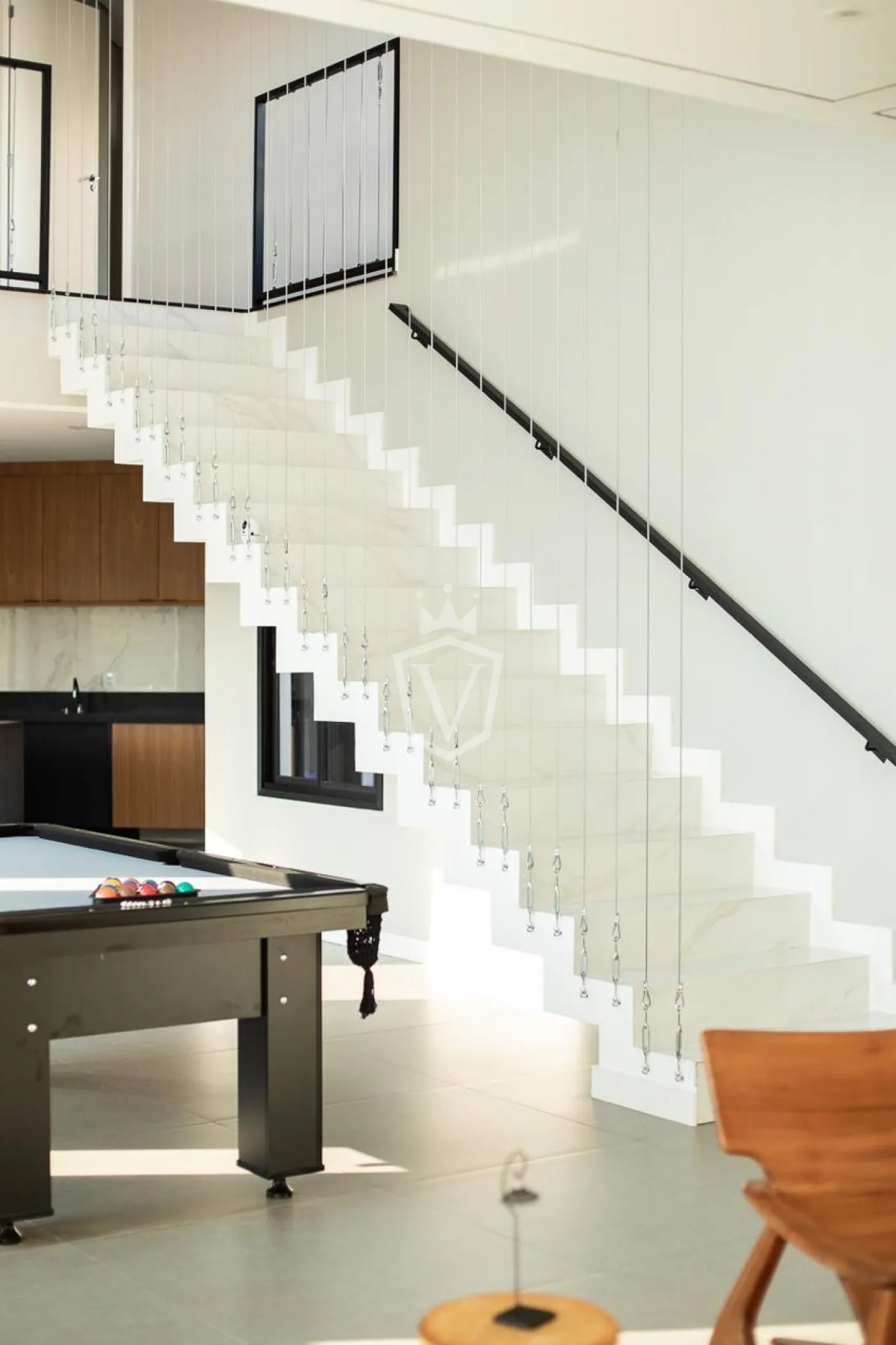 - Living com pé direito duplo, integrando sala, jantar e cozinha em conceito aberto
