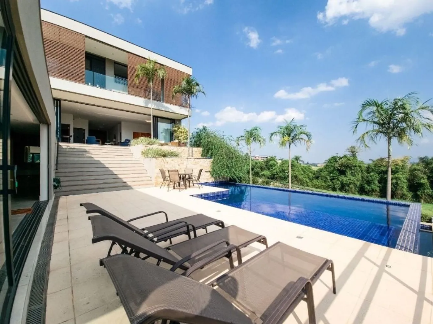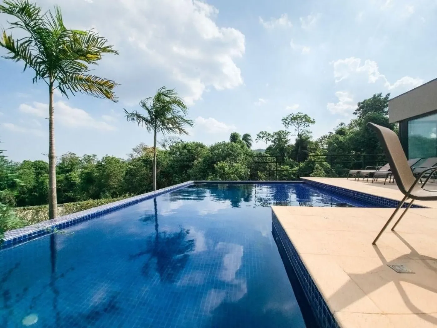- Piscina de alvenaria com prainha e borda infinita