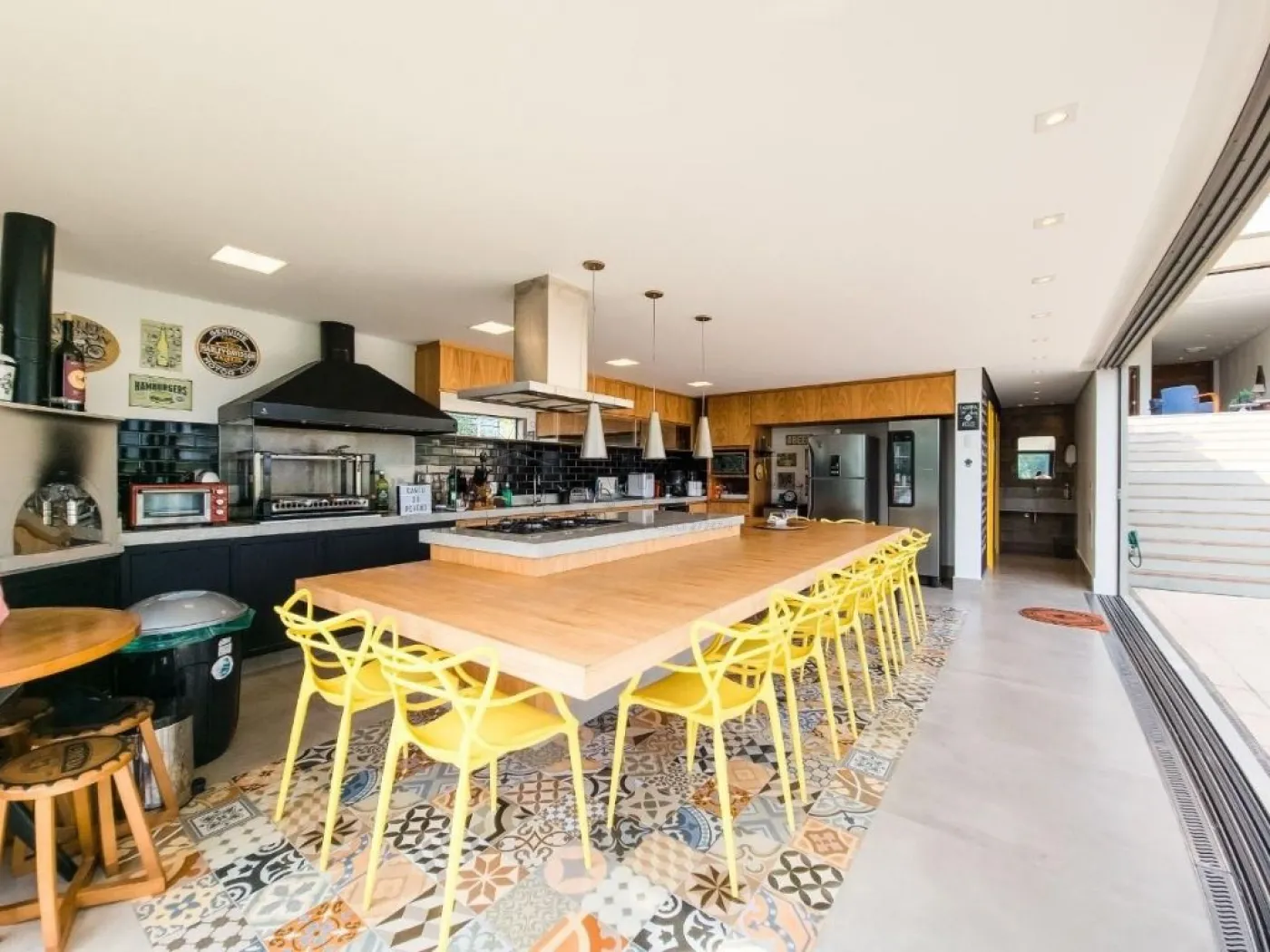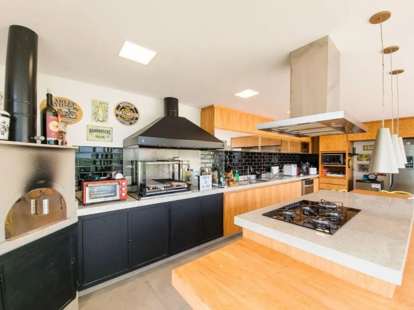 - Cozinha em conceito aberto com armários e ilha