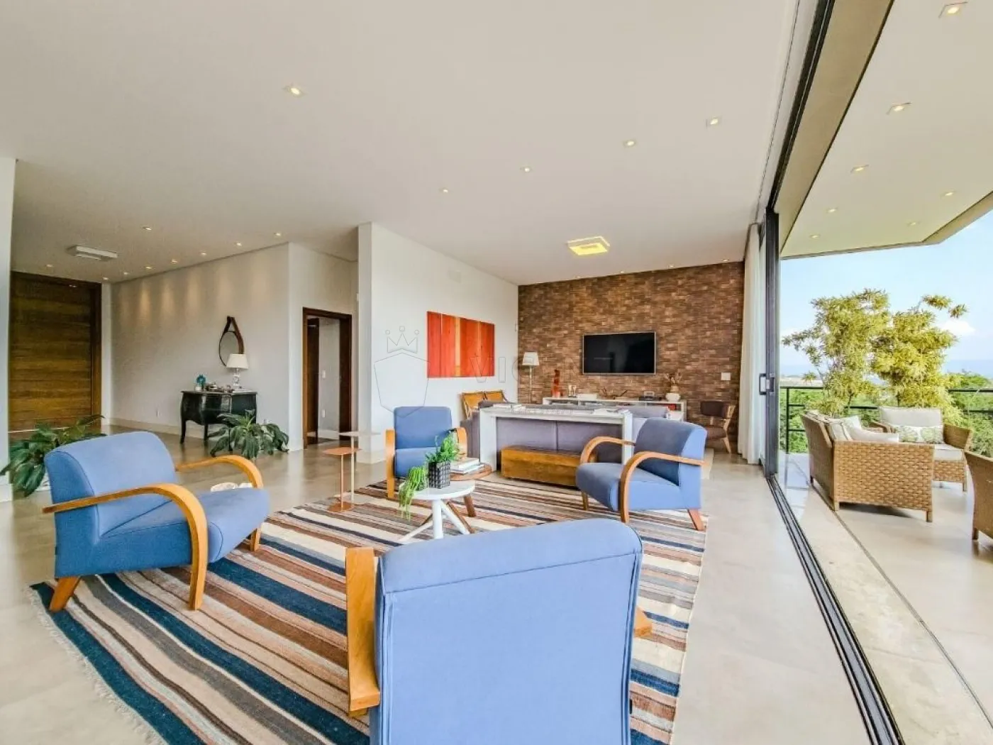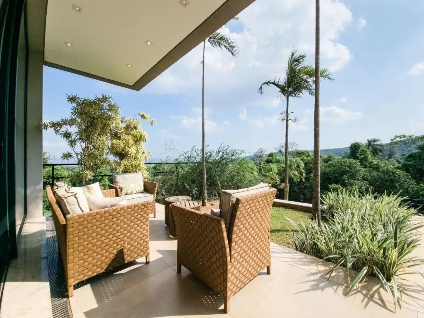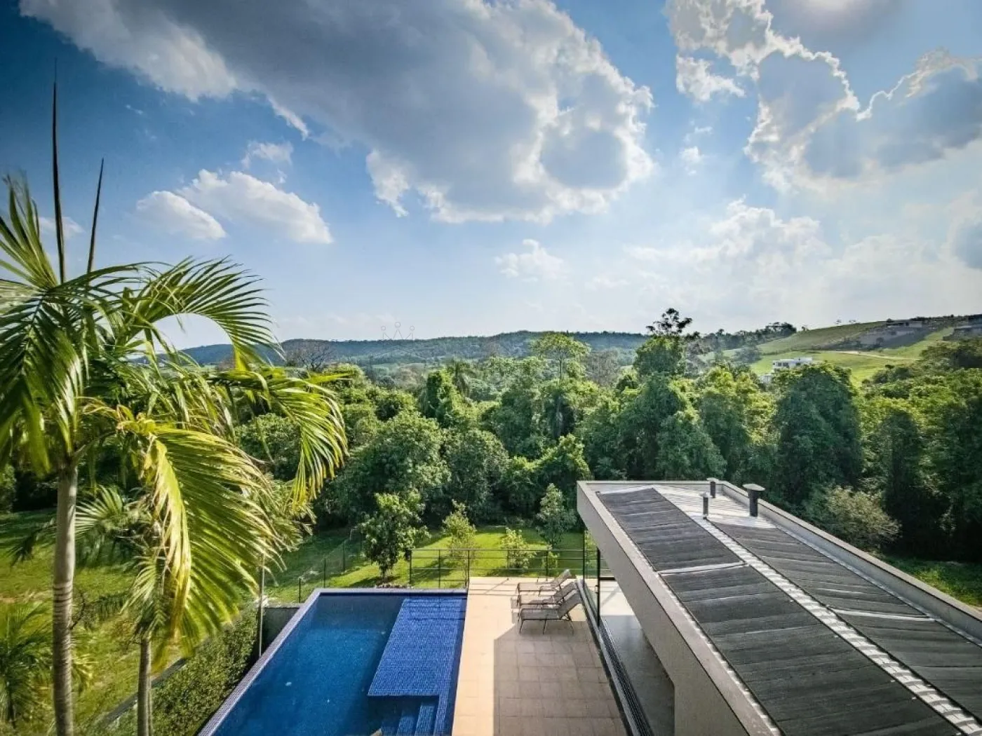 - 5 suítes, sendo uma suíte master com escritório particular, sala de TV íntima, closet espaçoso e varanda com vista panorâmica, outras duas suítes também possuem varanda, além de uma suíte térrea