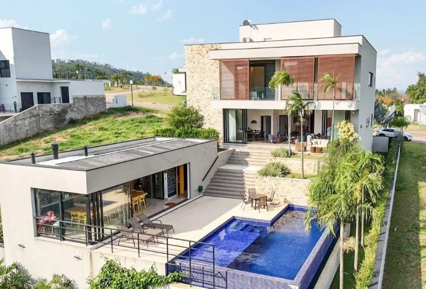 Projetada para oferecer exclusividade e sofisticação, a casa possui um design contemporâneo com detalhes impecáveis, como móveis planejados, um projeto luminotécnico completo, além de tecnologias sustentáveis, como painéis fotovoltaicos para geração de energia e aquecimento solar de água.