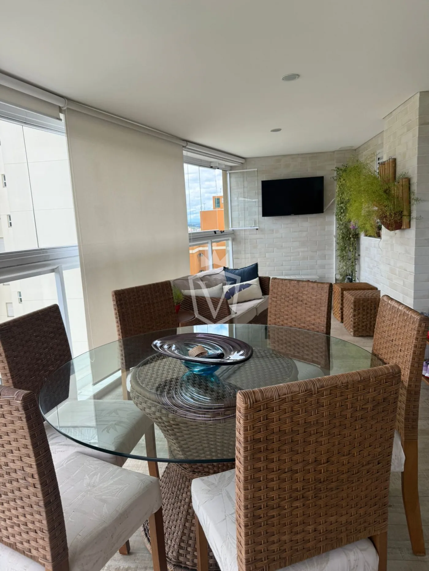 - Varanda gourmet com churrasqueira e fechamento em vidro
