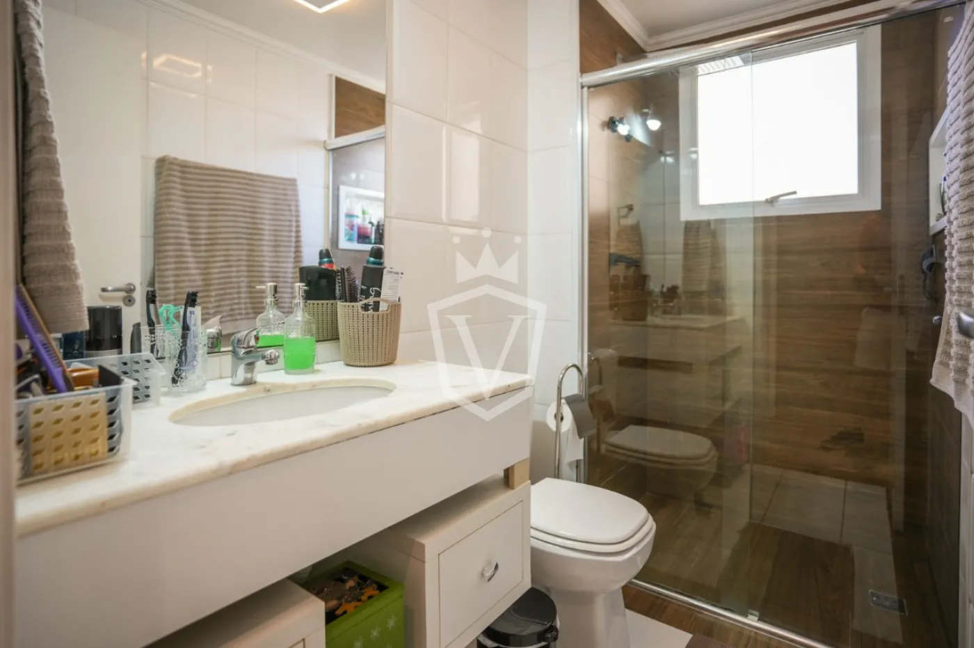 - Banheiros com gabinetes e box de vidro