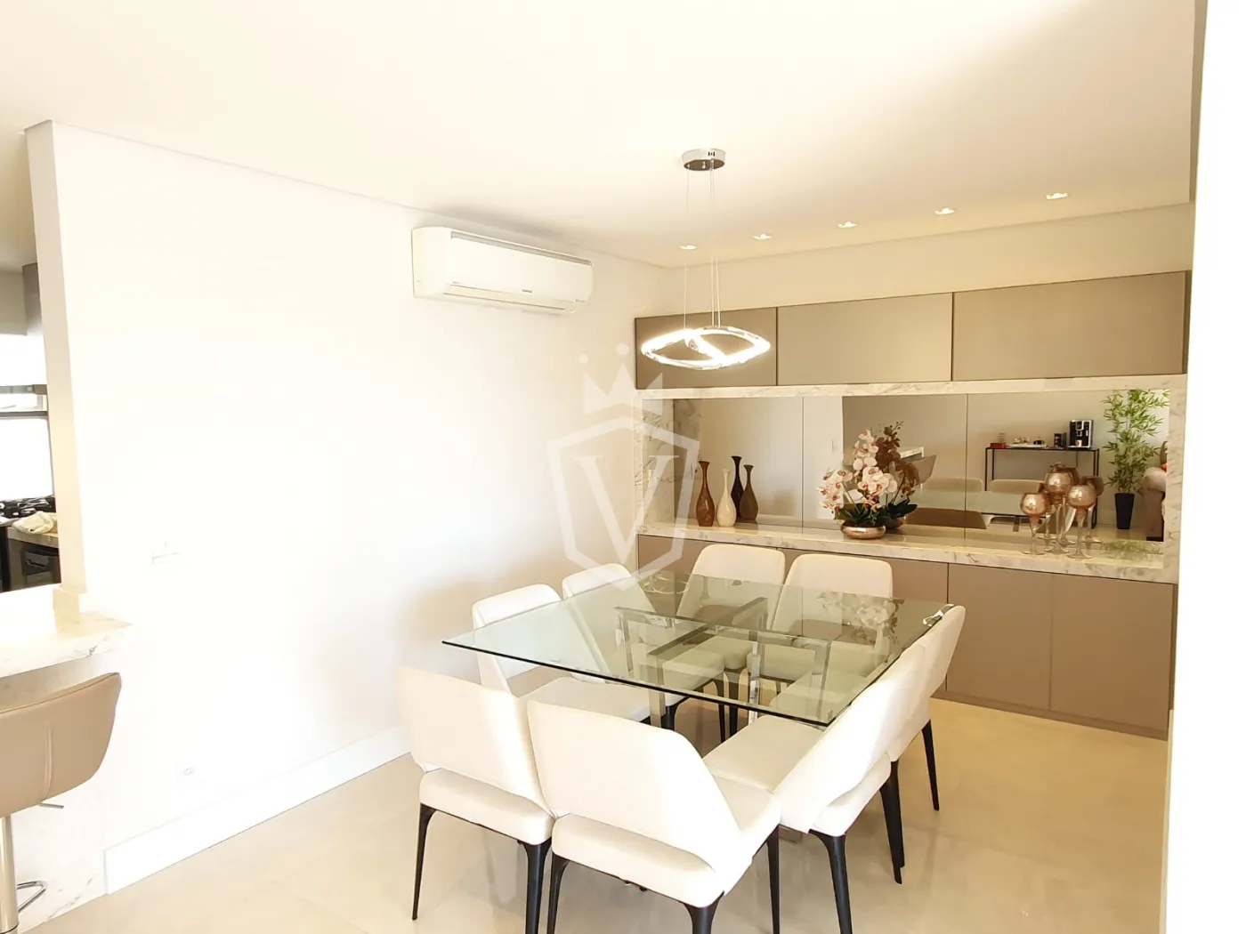 Sala de jantar com aparador em granito