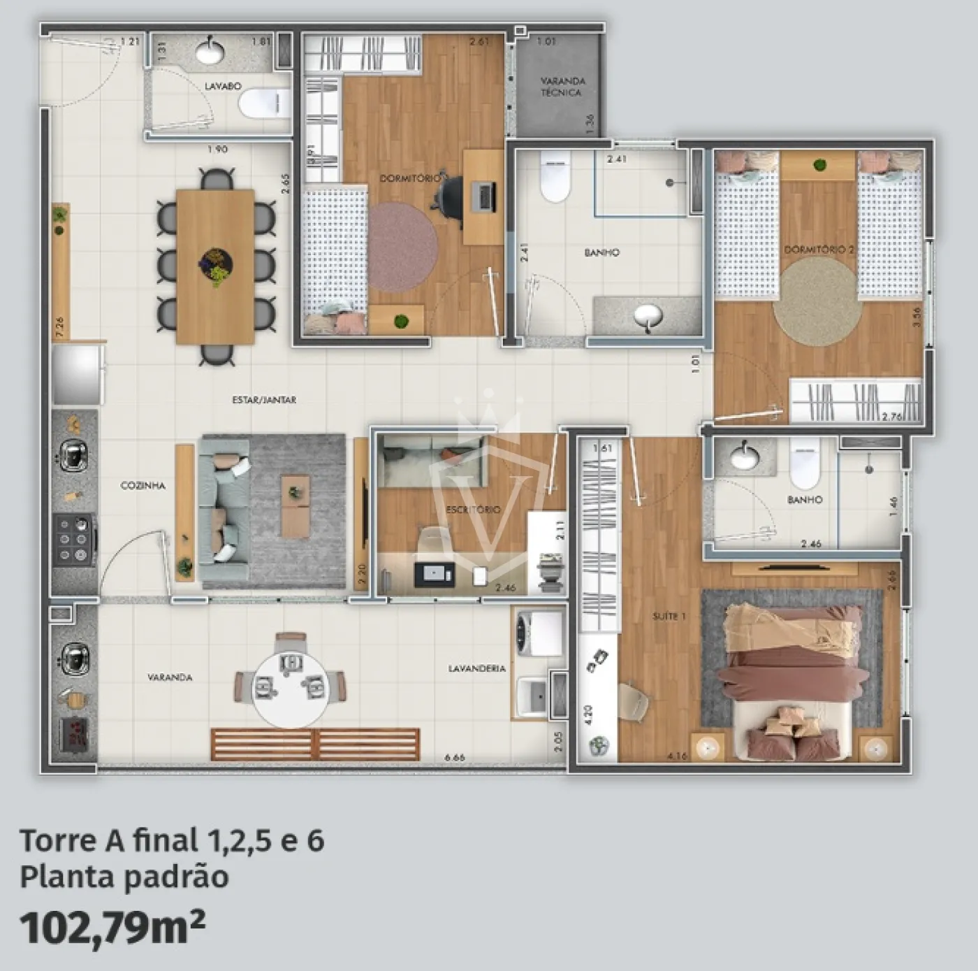 - Apartamento com 102,79m²