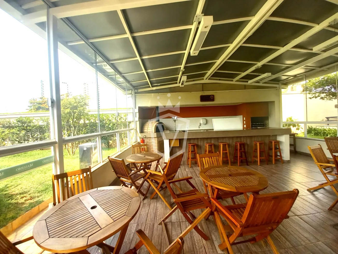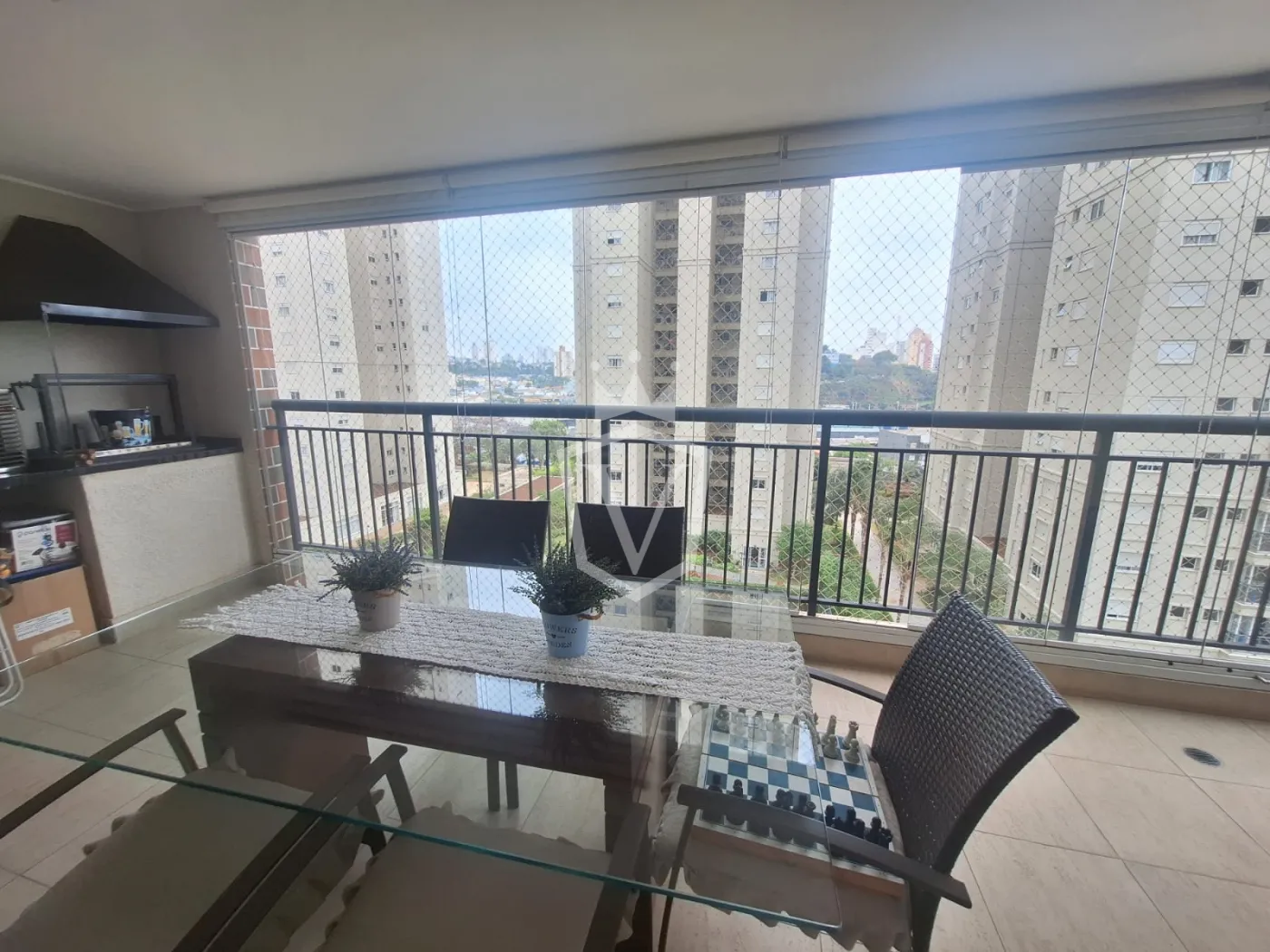 Varanda gourmet, um diferencial importante que amplia o espaço social do apartamento e é perfeita para momentos de lazer e refeições ao ar livre, com churrasqueira e espaço para mesa.