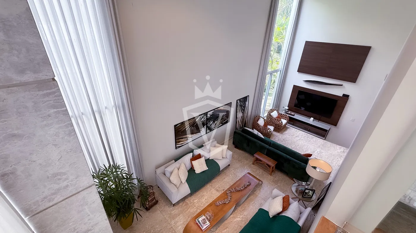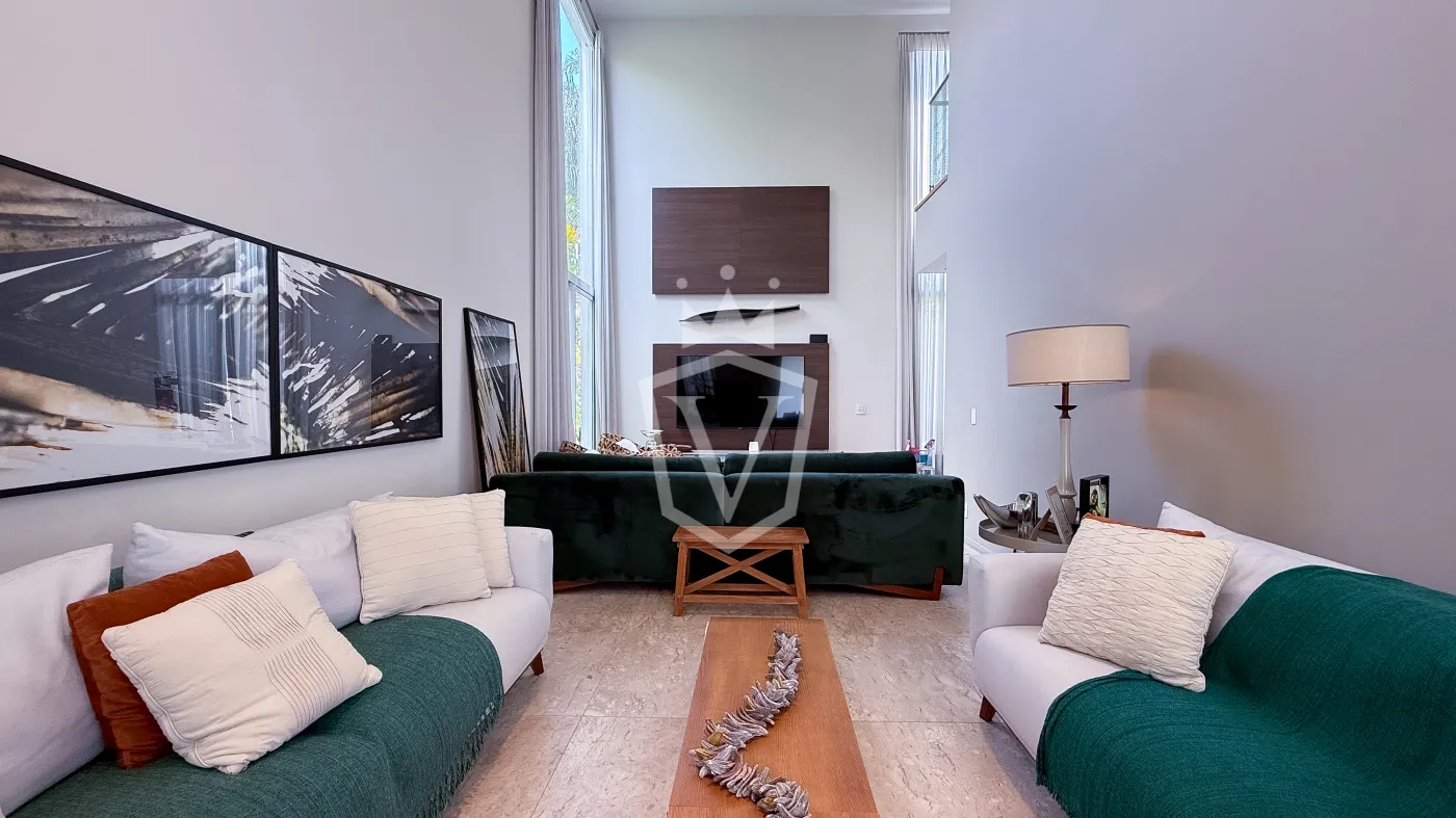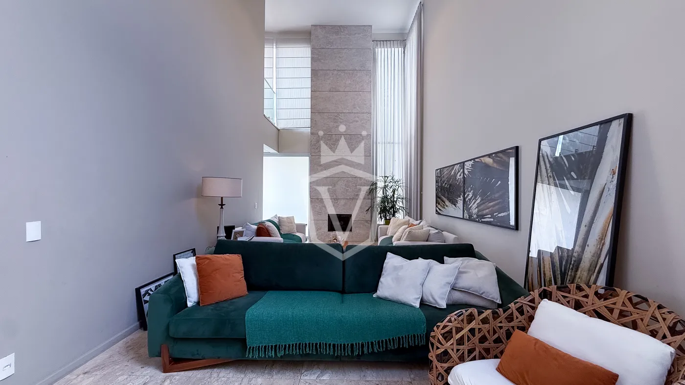 - Sala de Estar e TV integradas com lareira e pé direito duplo