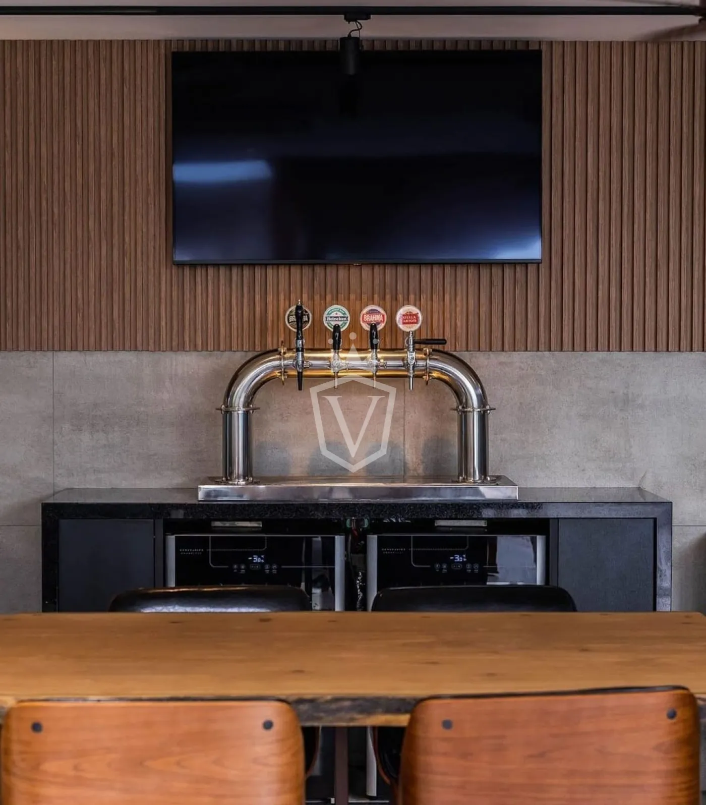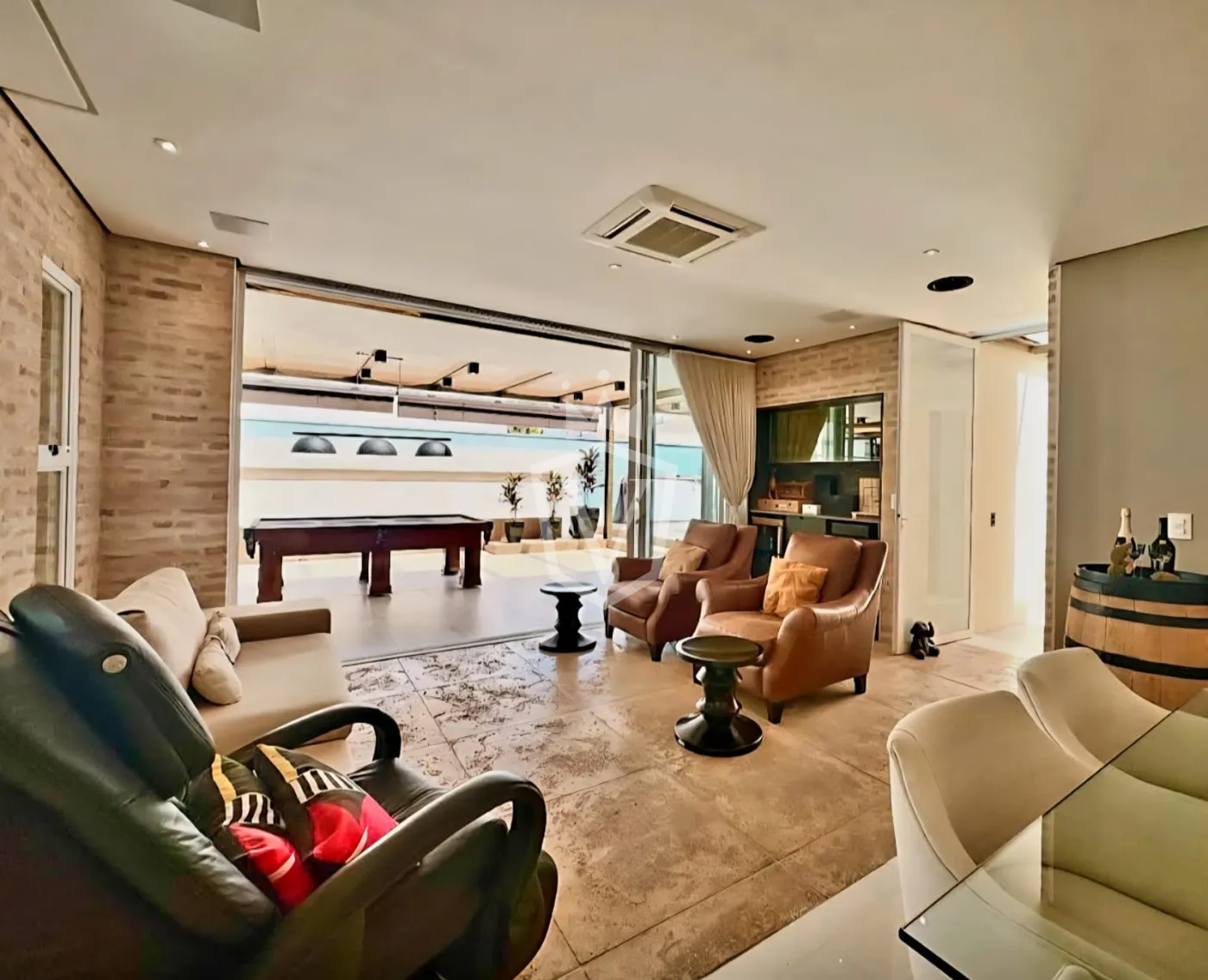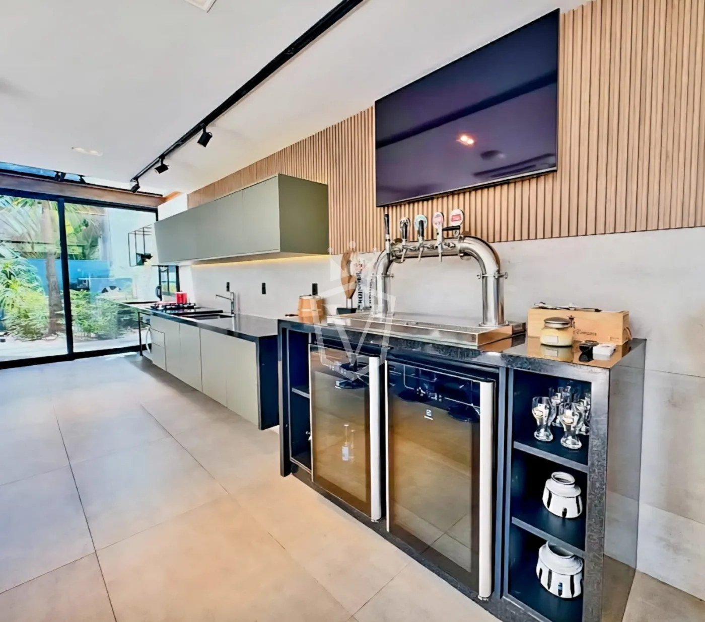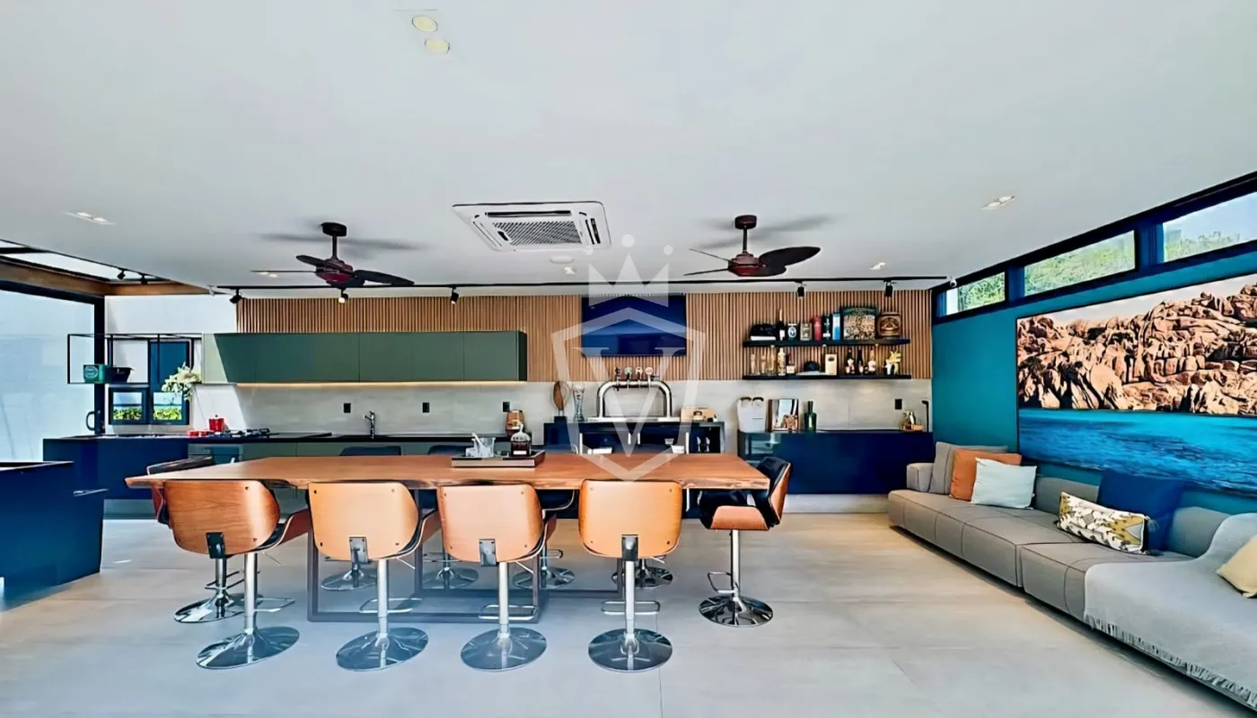 - Espaço gourmet integrado e totalmente equipado com churrasqueira, chopeira, adega, máquina de gelo, geladeira, entre outros itens.