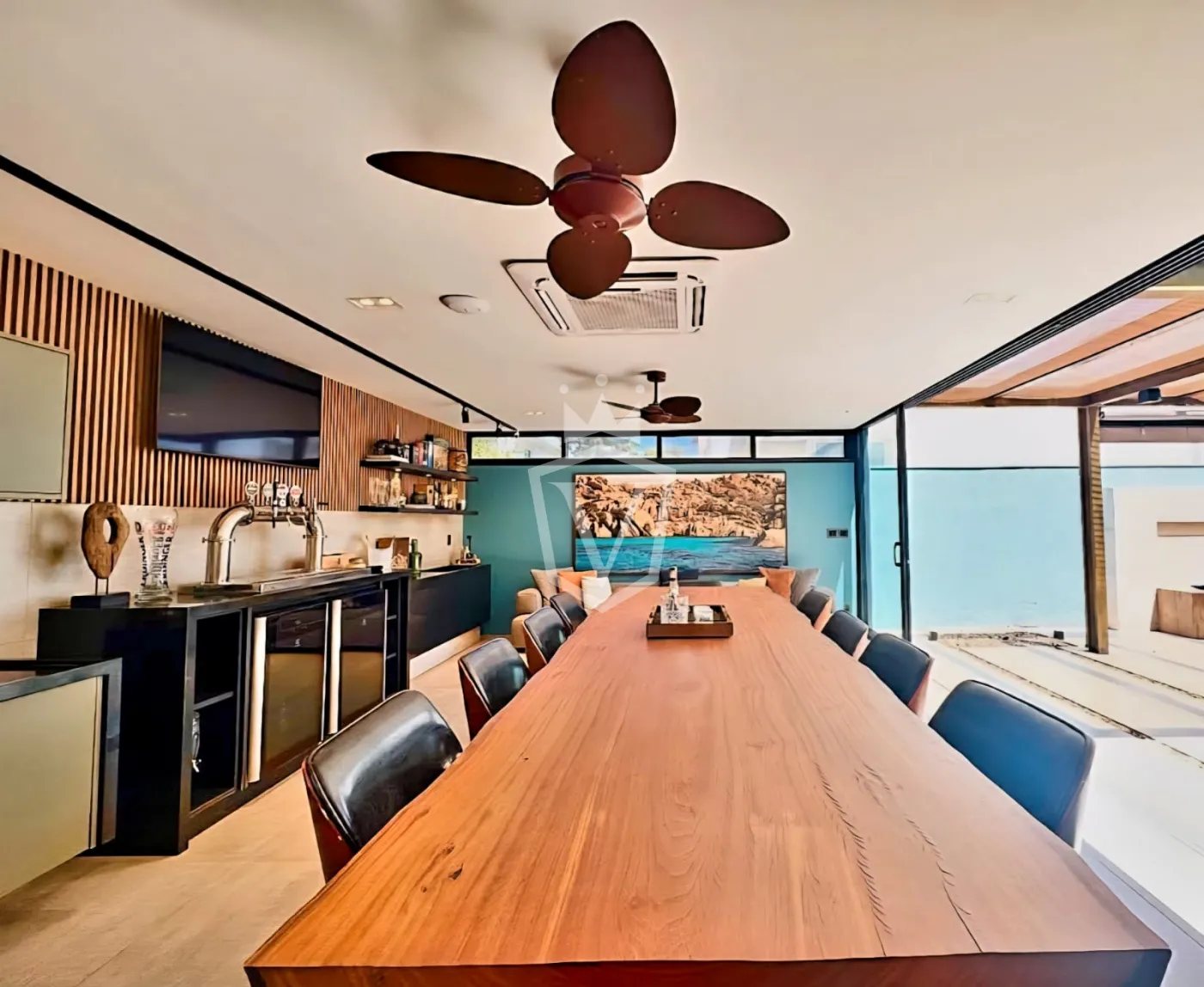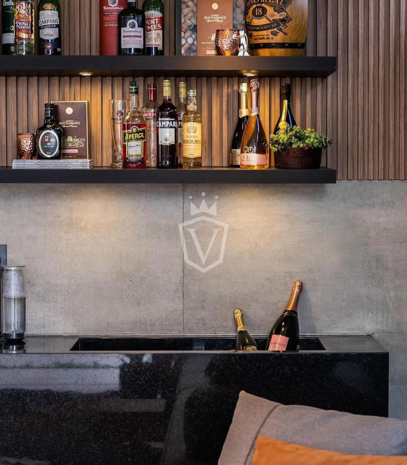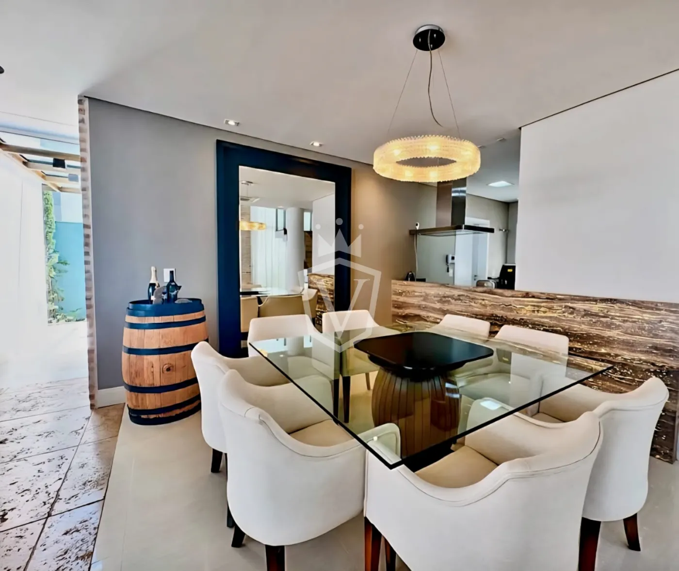 - Espaço gourmet integrado e totalmente equipado com churrasqueira, chopeira, adega, máquina de gelo, geladeira, entre outros itens.