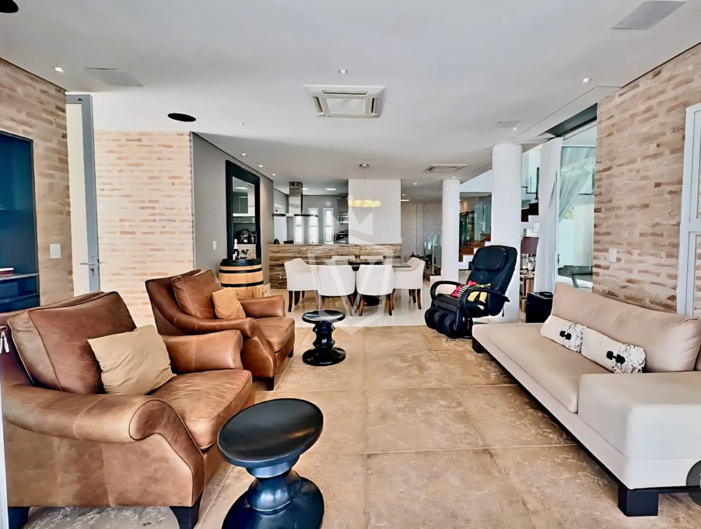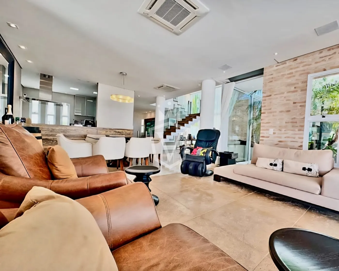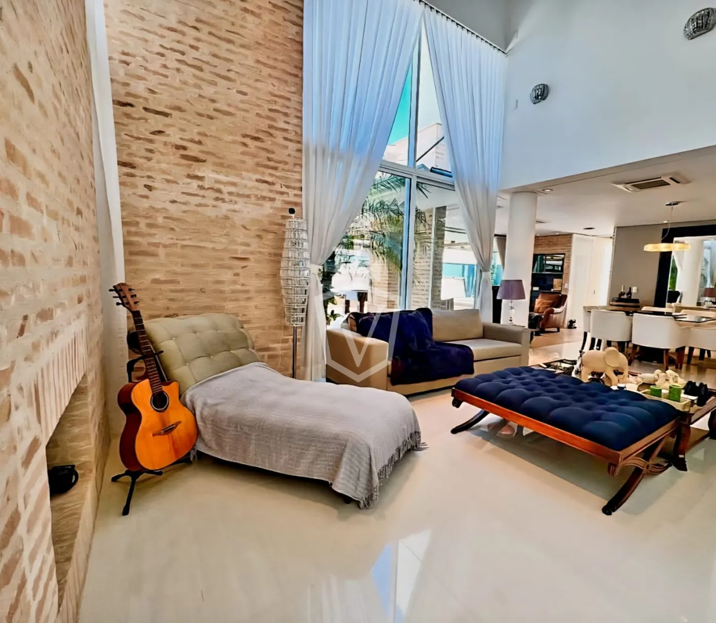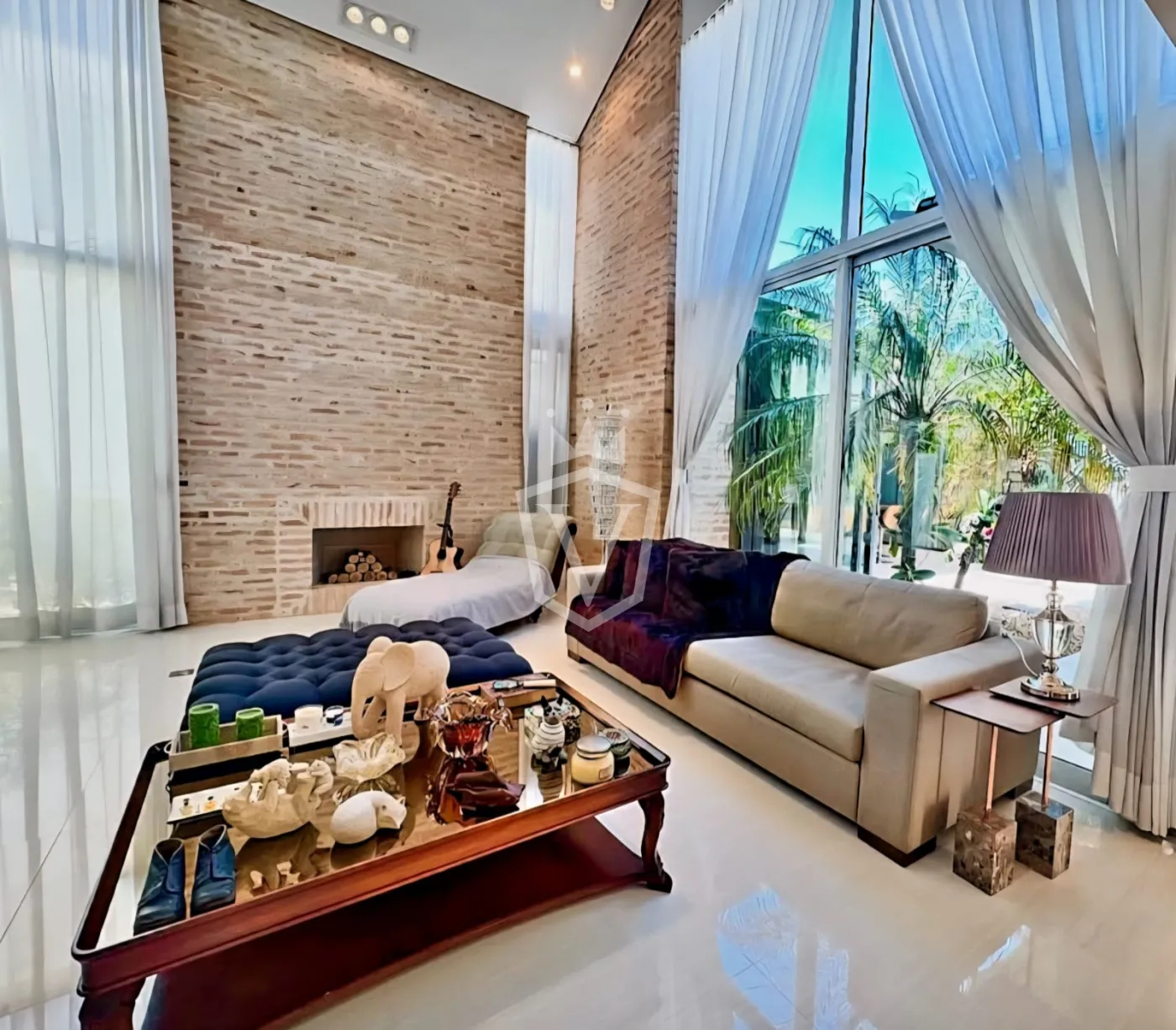 - Living com pé direito duplo com 3 ambientes, sendo uma sala com lareira.