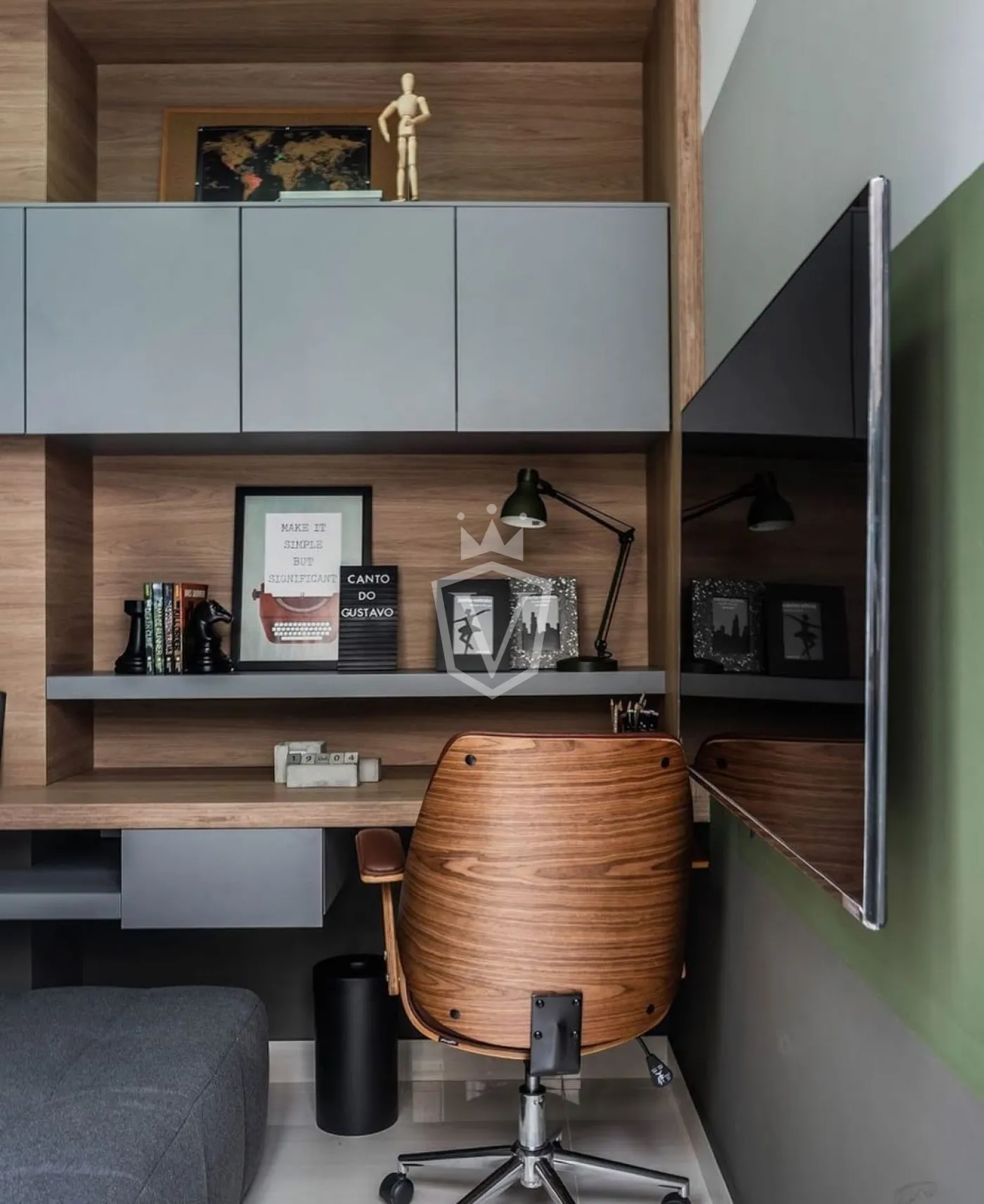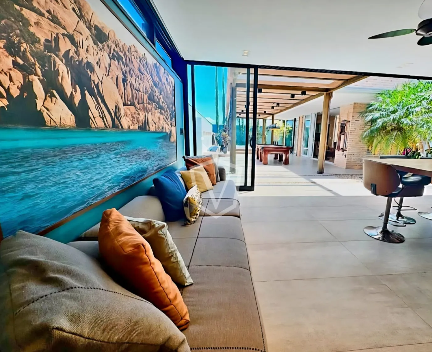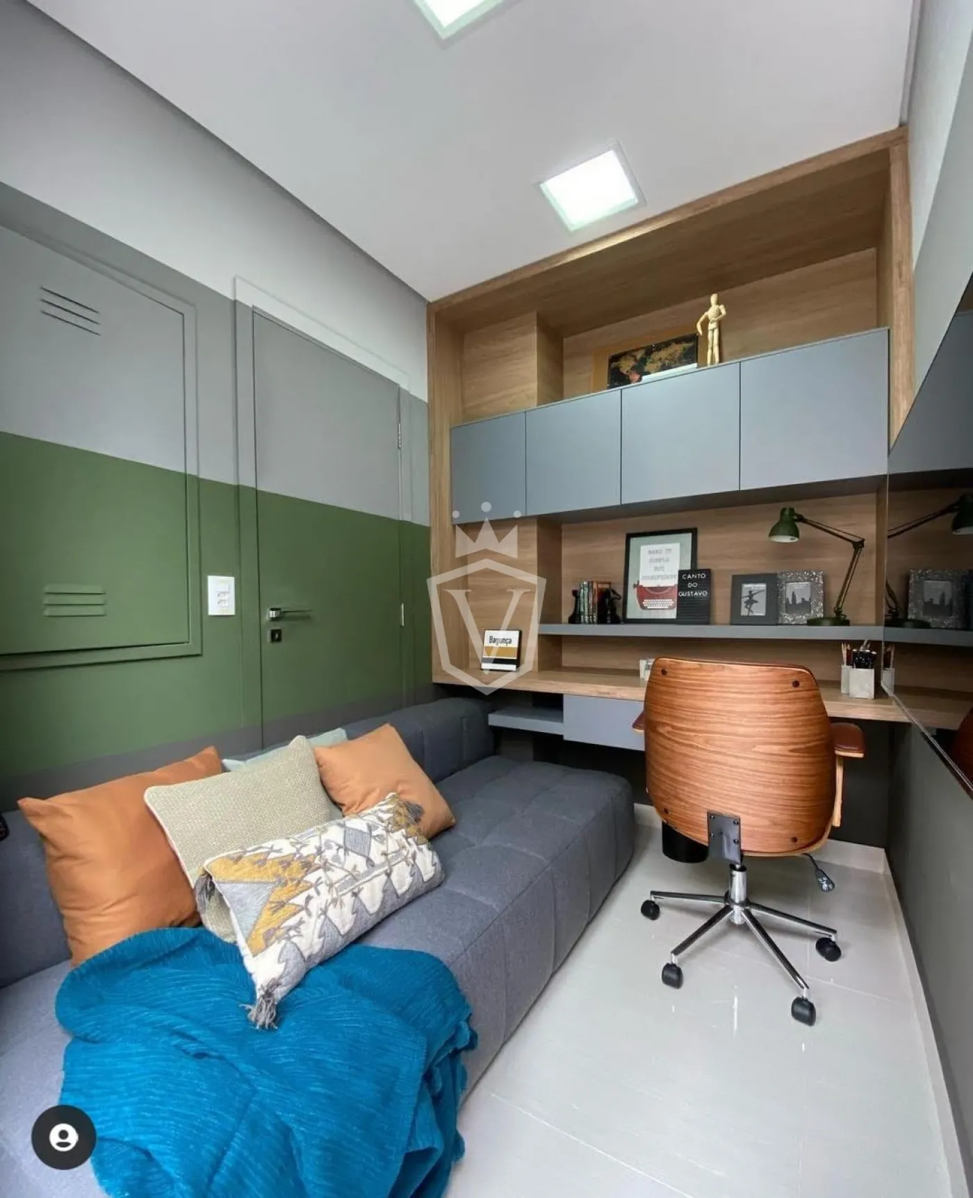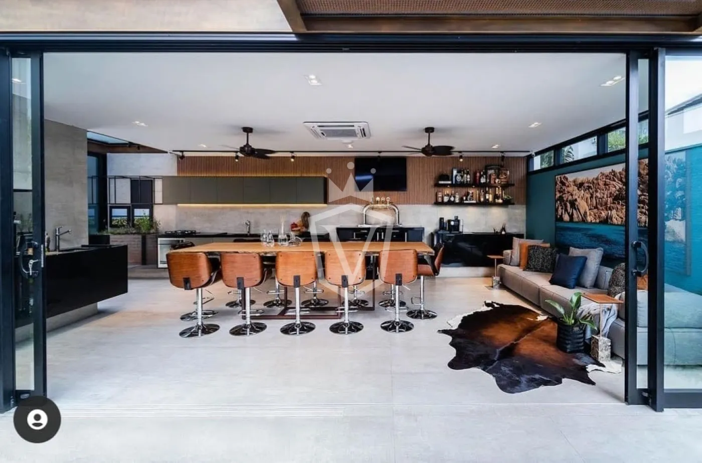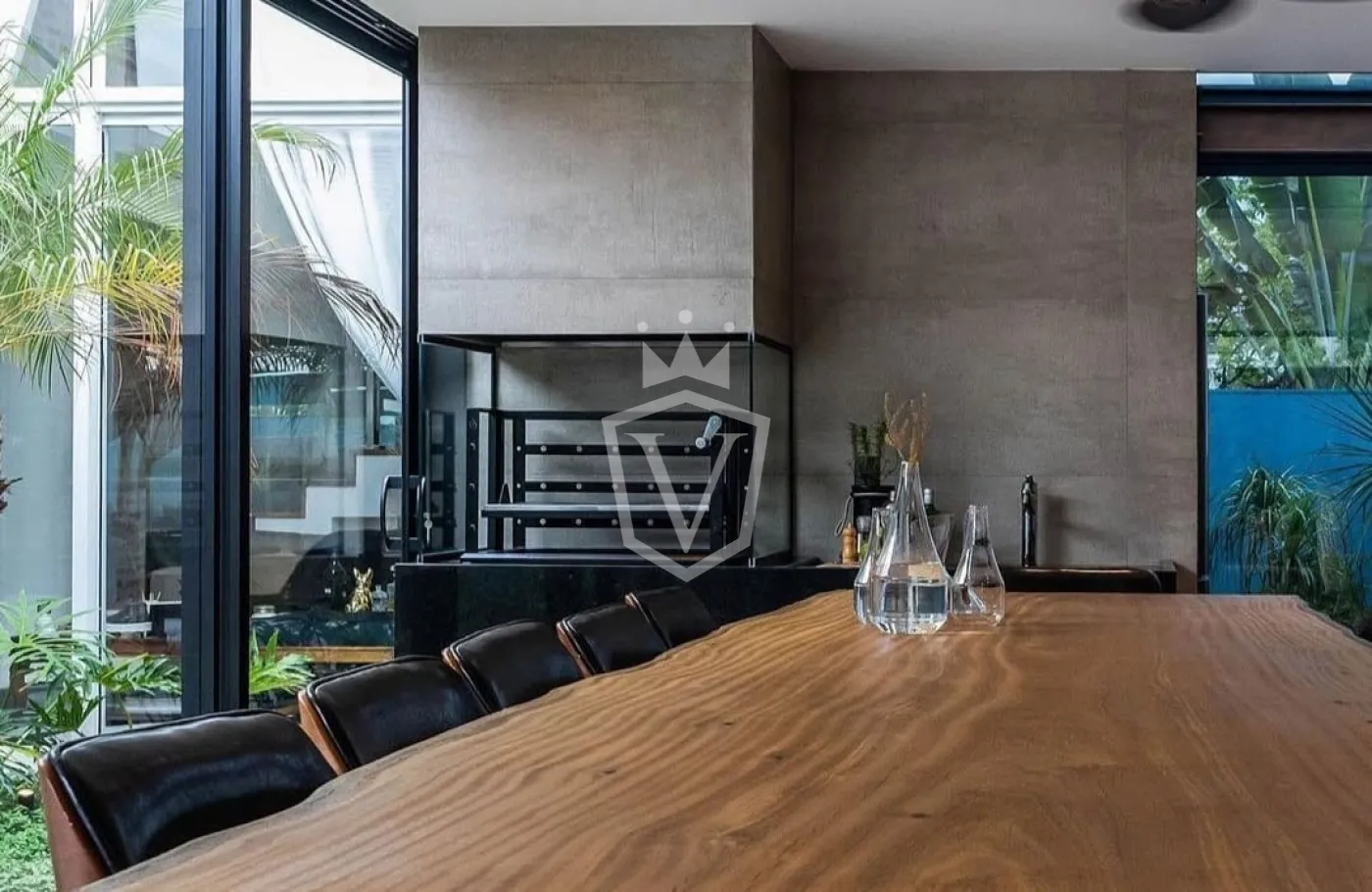 - Living com pé direito duplo com 3 ambientes, sendo uma sala com lareira.