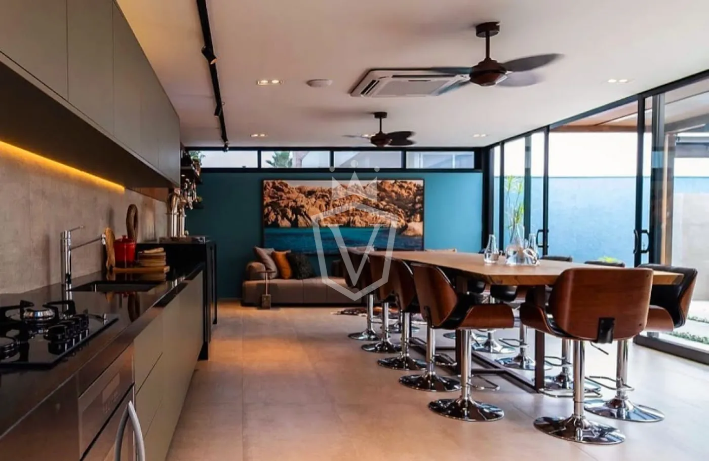 - Cozinha planejada em conceito aberto.