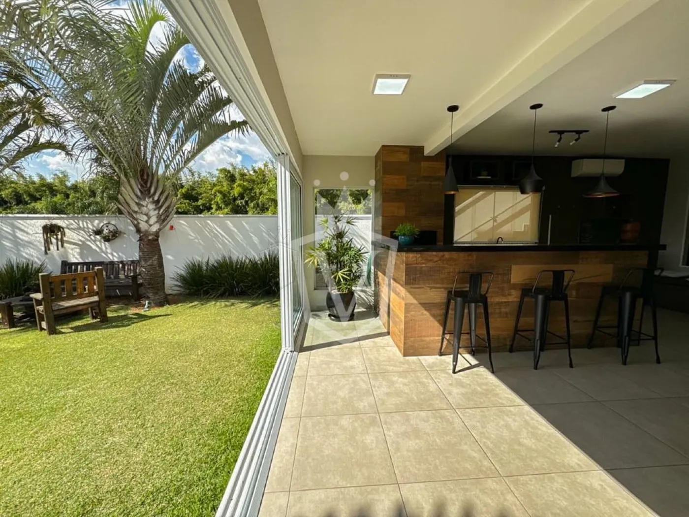 Amplo quintal com paisagismo e fogo de chão