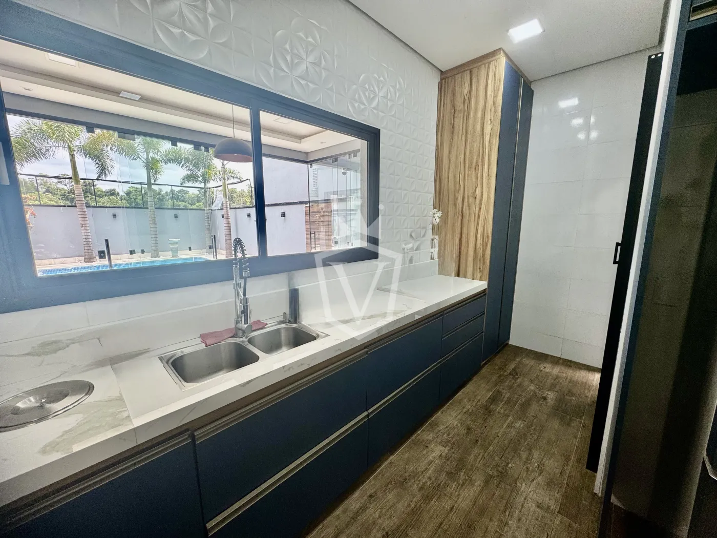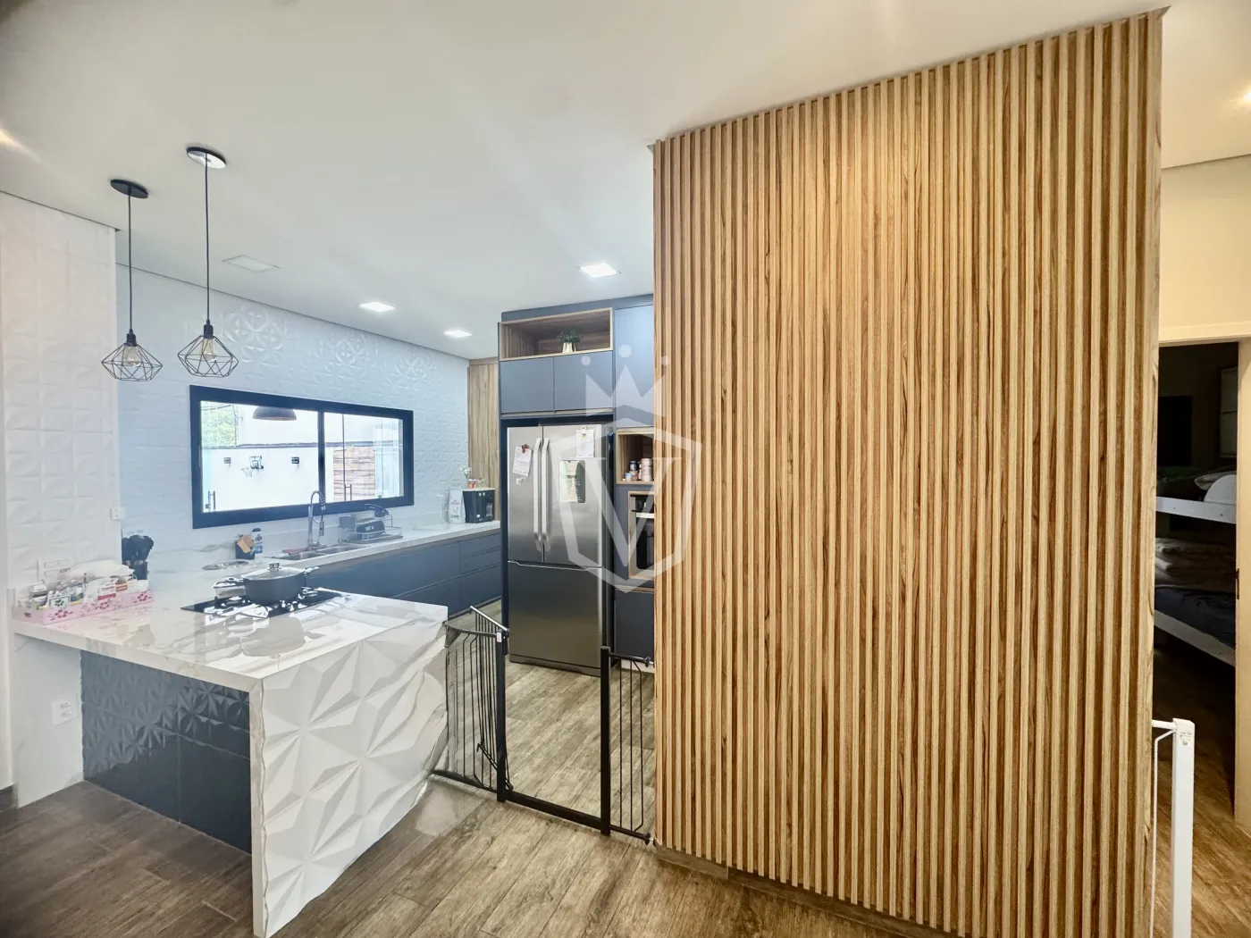 - Cozinha em conceito aberto com ilha