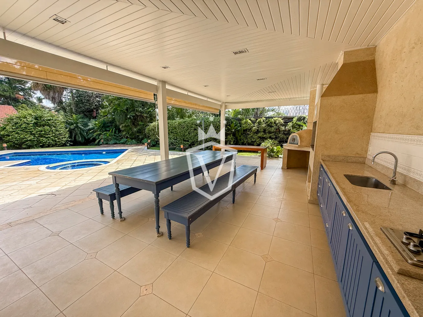 - Área gourmet externa coberta e ampla, com churrasqueira, forno de pizza, vestiário com banheiro.