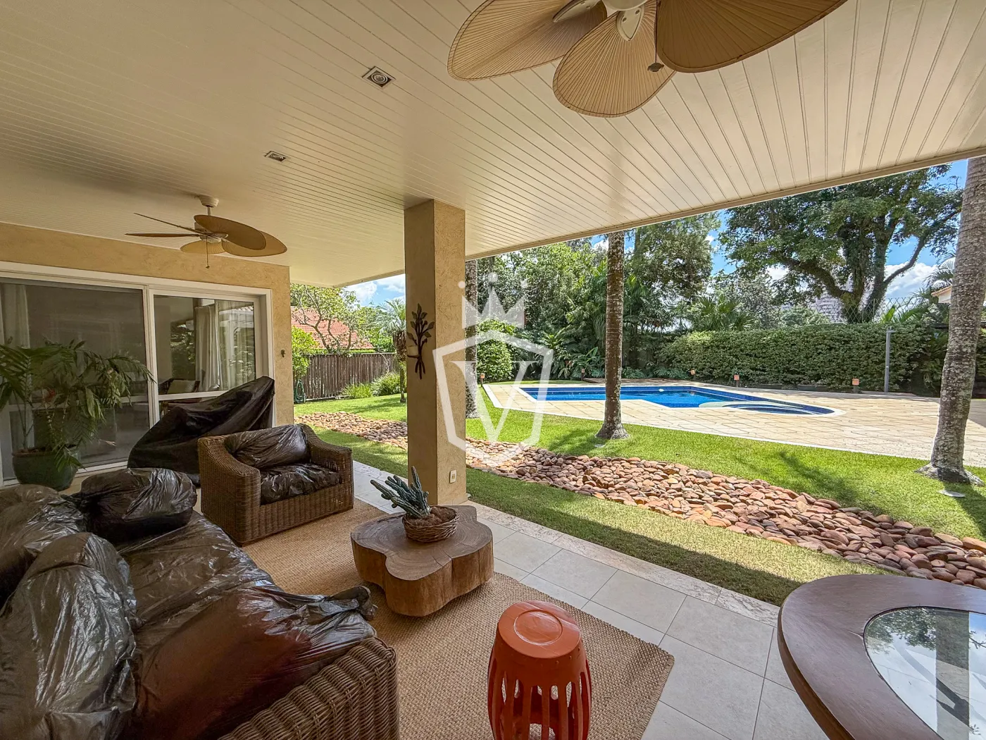 - Ampla varanda externa, coberta, de frente para a piscina.