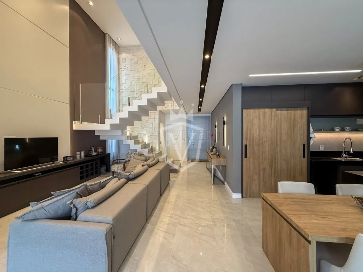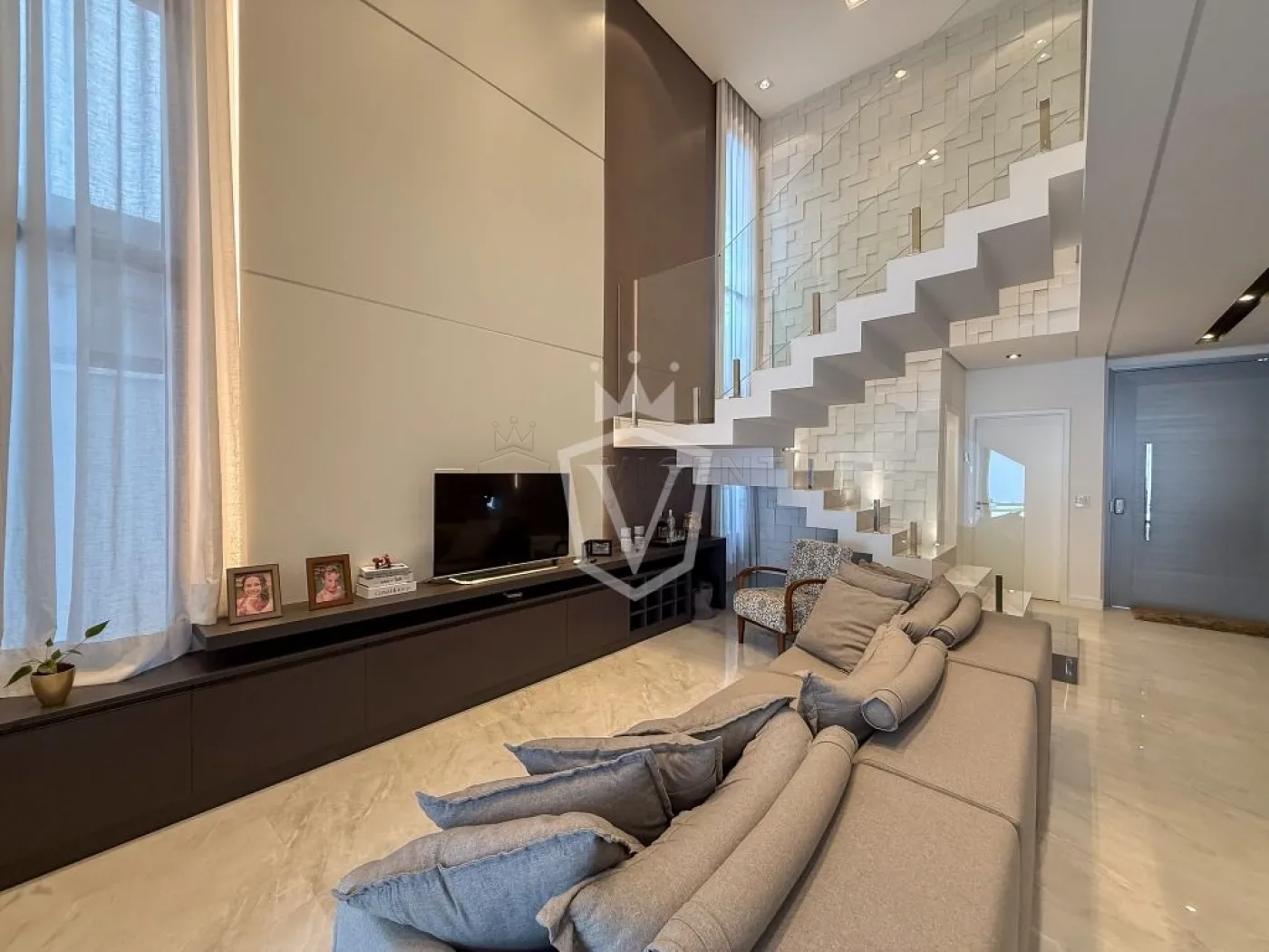 - Sala de estar com pé direito alto integrada á sala da jantar