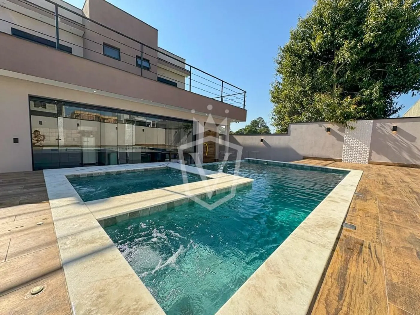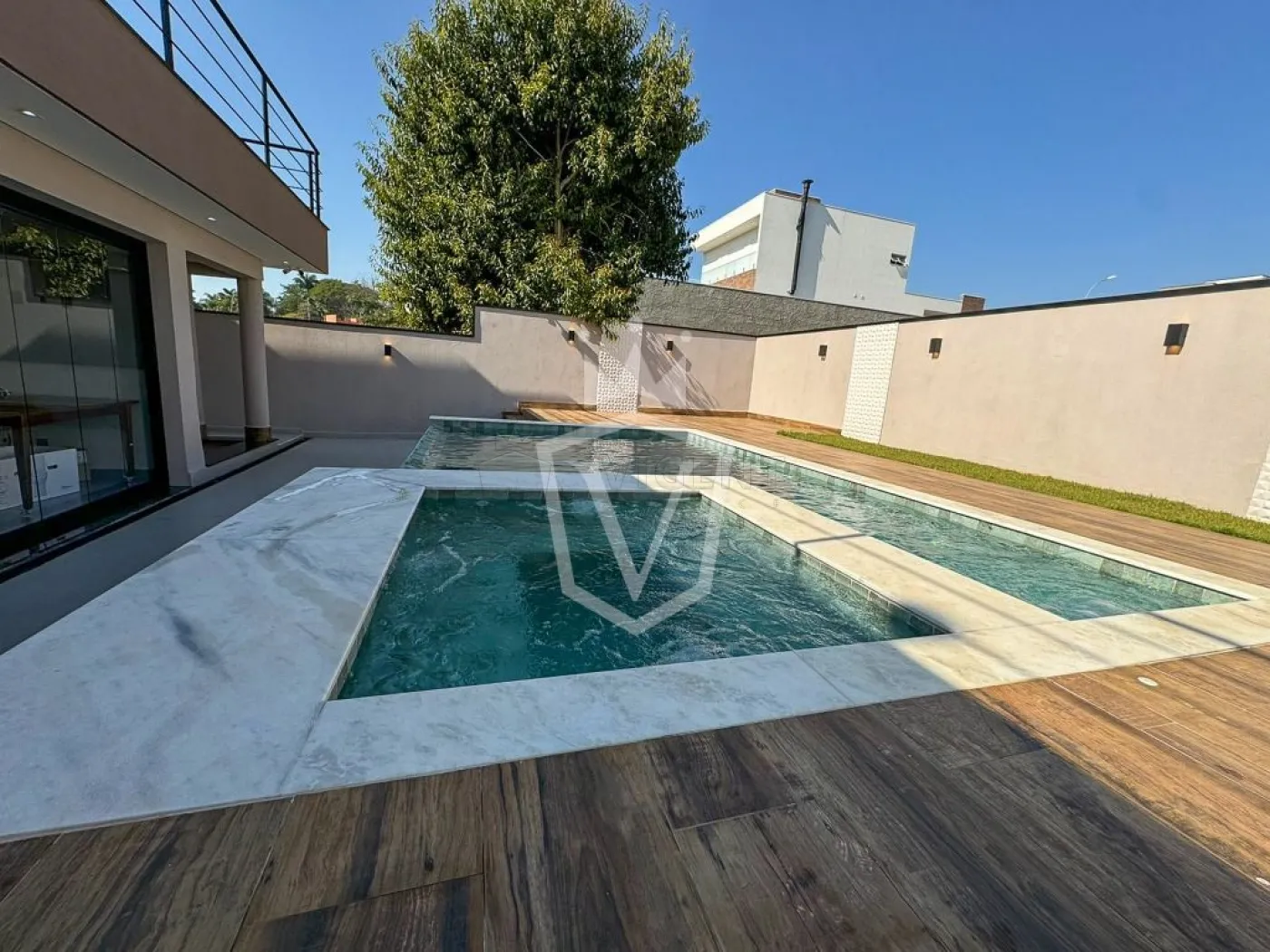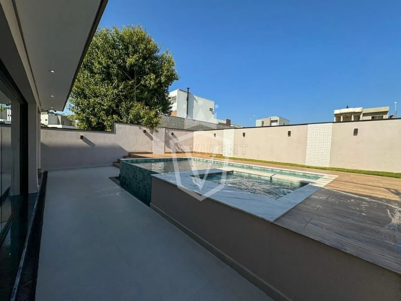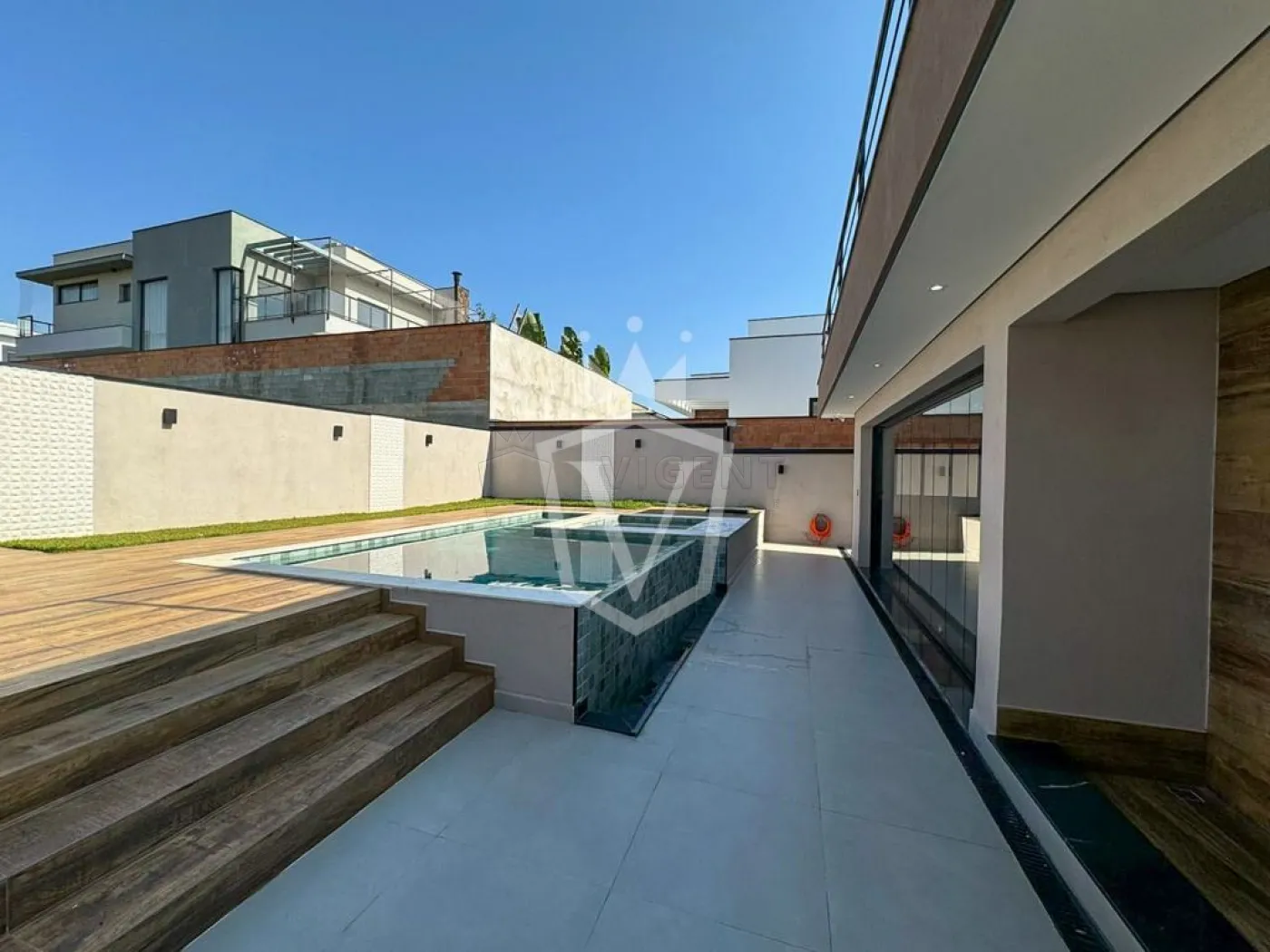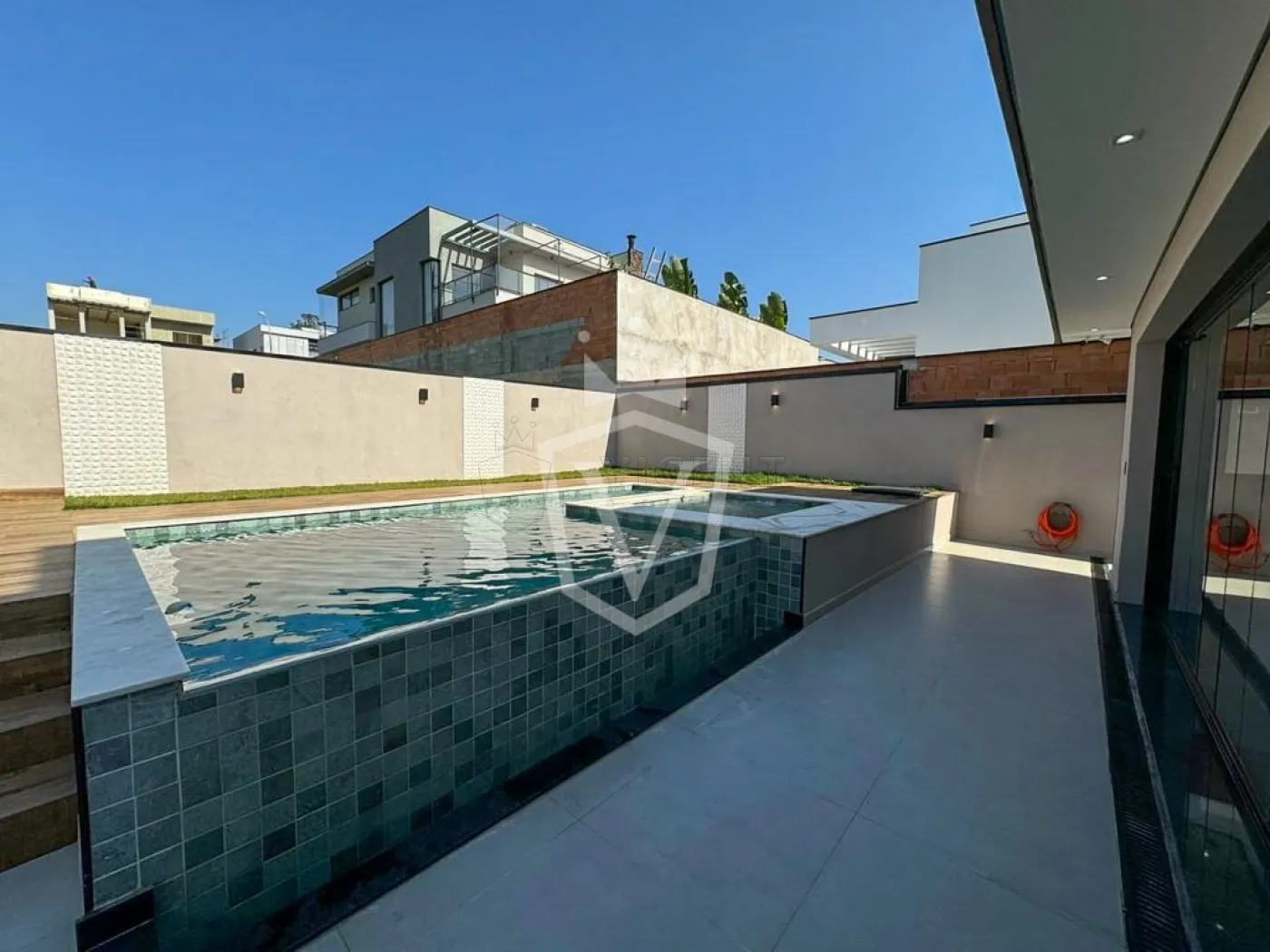 -Piscina com ofuro, preparada para aquecimento solar.