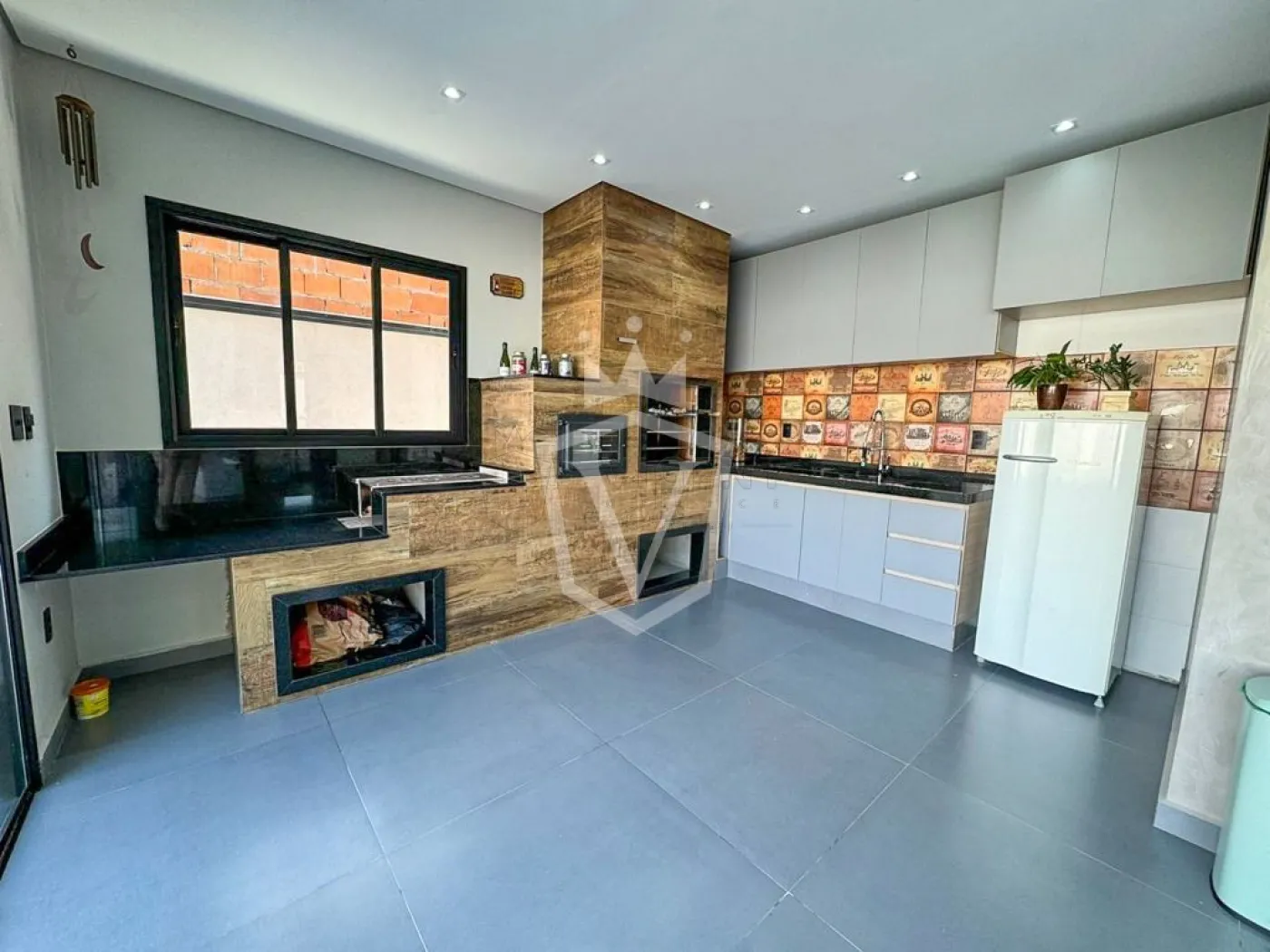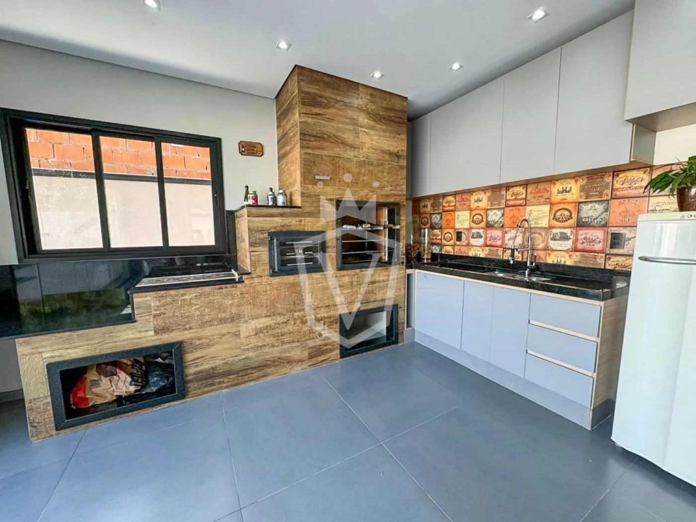 -Espaço gourmet com churrasqueira, forno e fogão á lenha