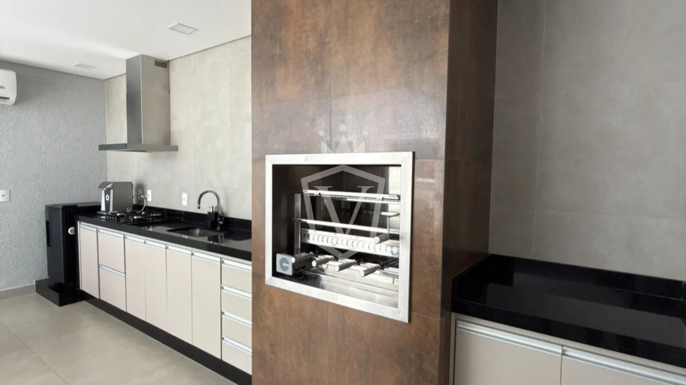 Casa com ar-condicionado em todos os cômodos, sistema de placas solares e câmeras de segurança. Possui móveis planejados, duas cozinhas com cooktop, coifa e forno elétrico. Área externa com teto retrátil e churrasqueira elétrica com exaustor. Quartos com persianas, portão eletrônico e estrutura preparada para ampliação no segundo andar.