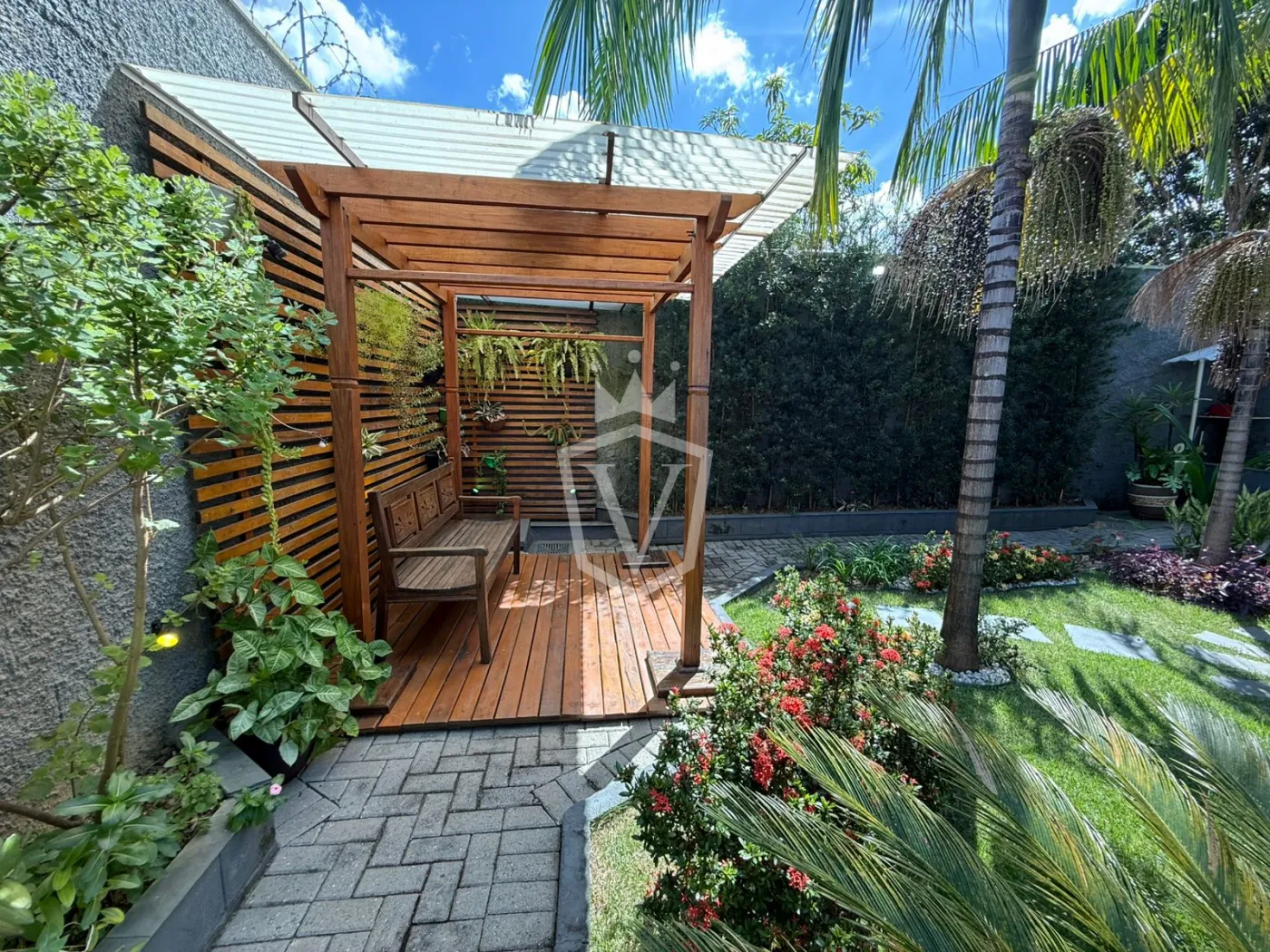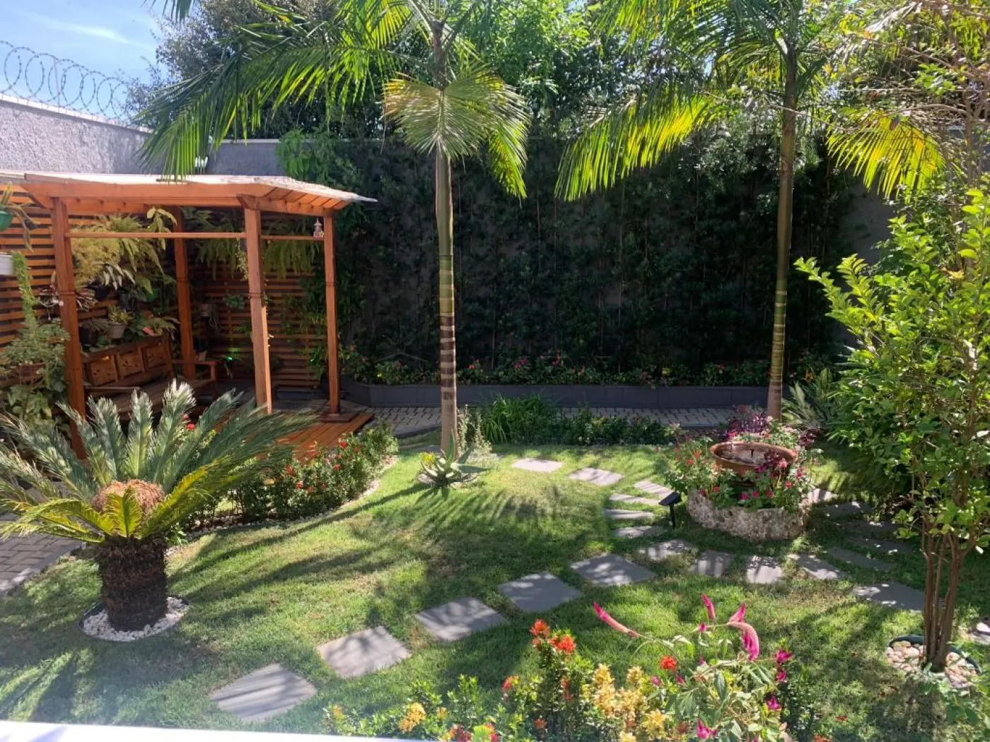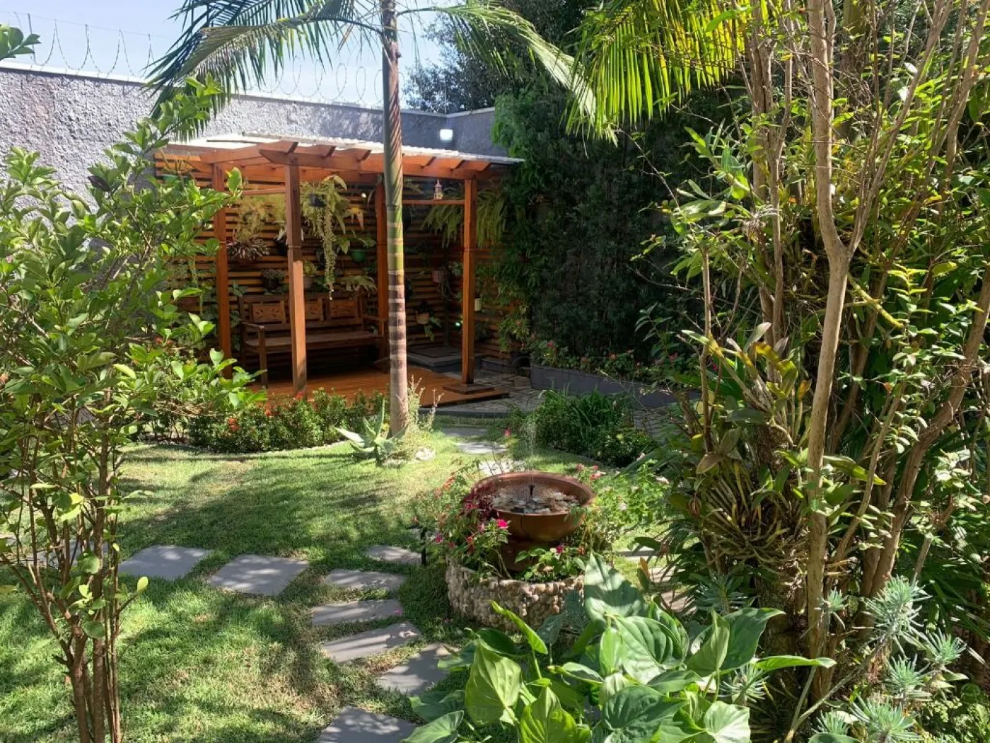 - Jardim com fonte, pergolado e iluminação;