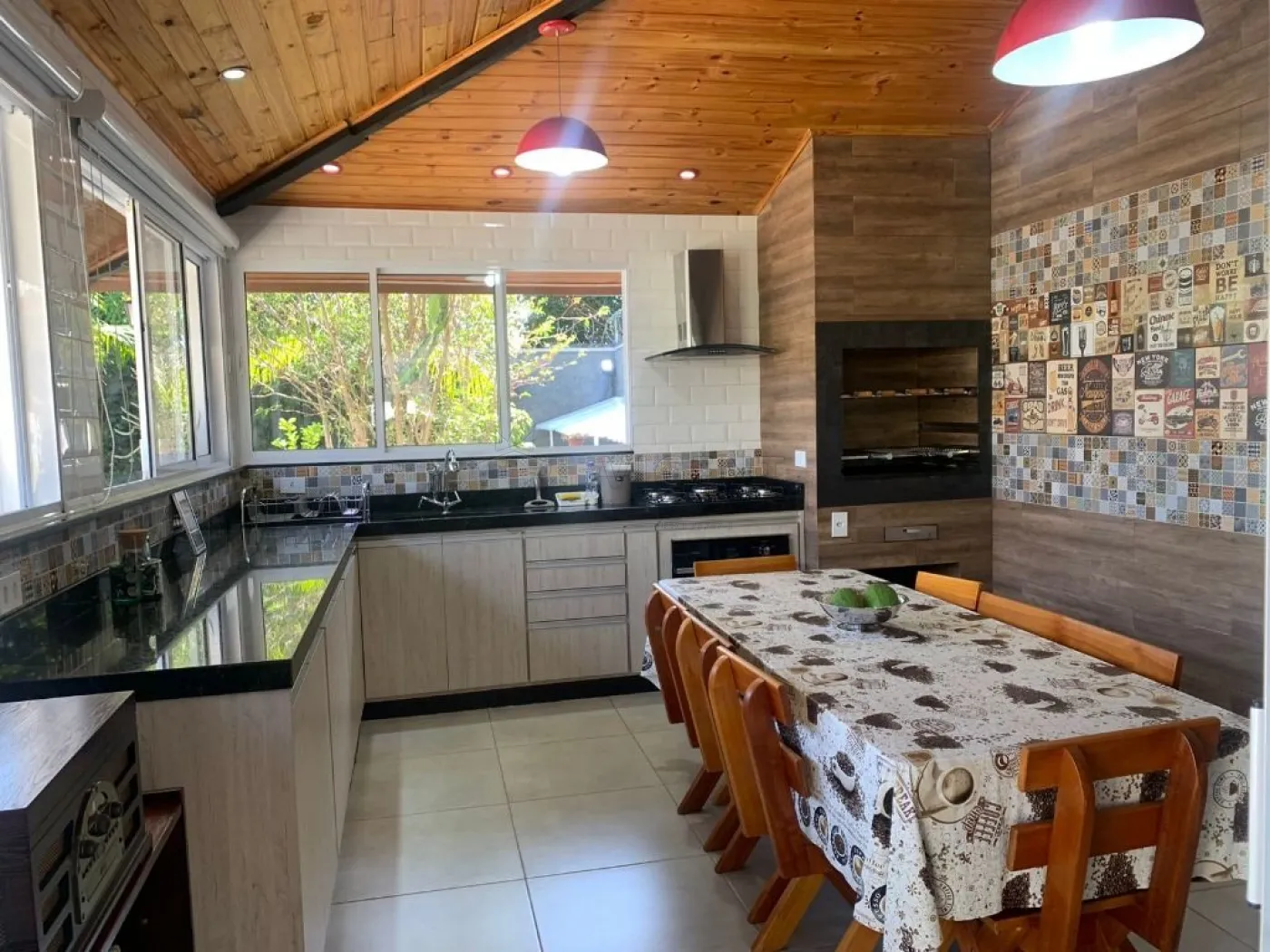 - Espaço gourmet fechado, com churrasqueira, forno, cooktop e coifa;