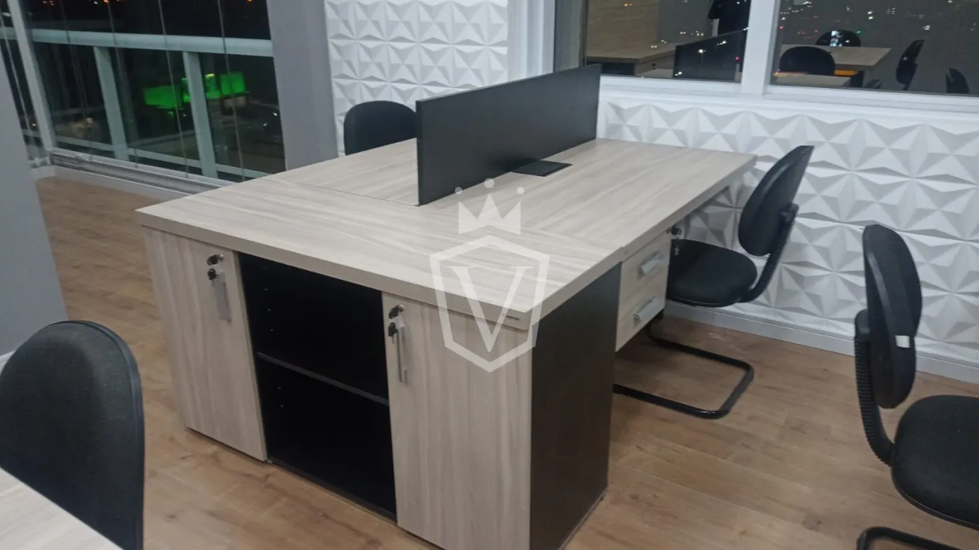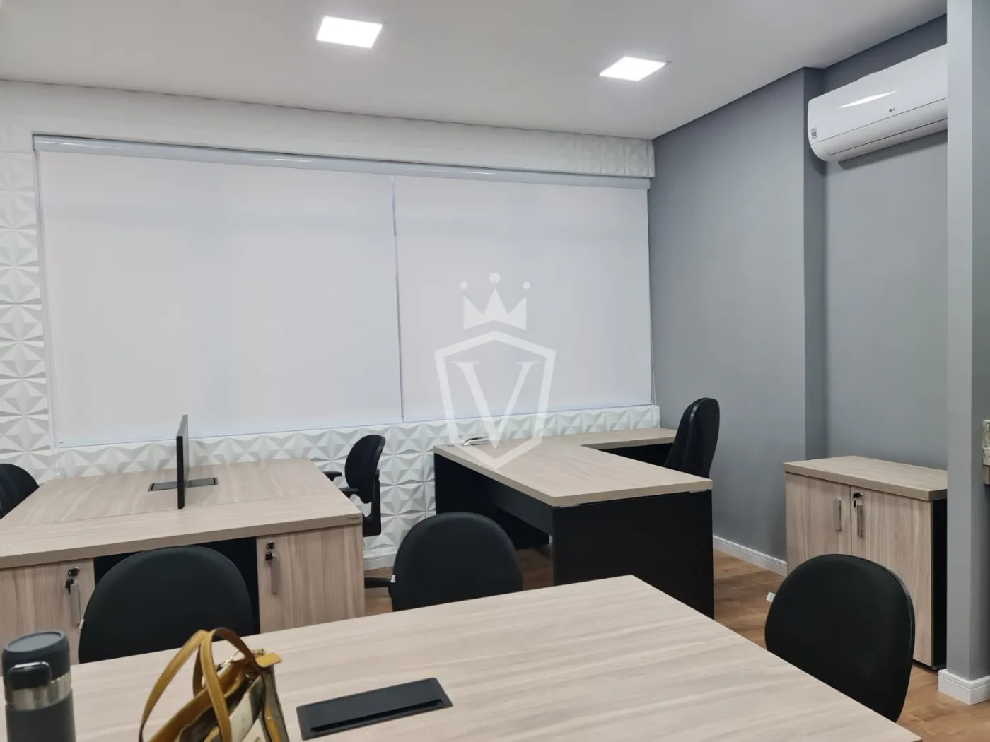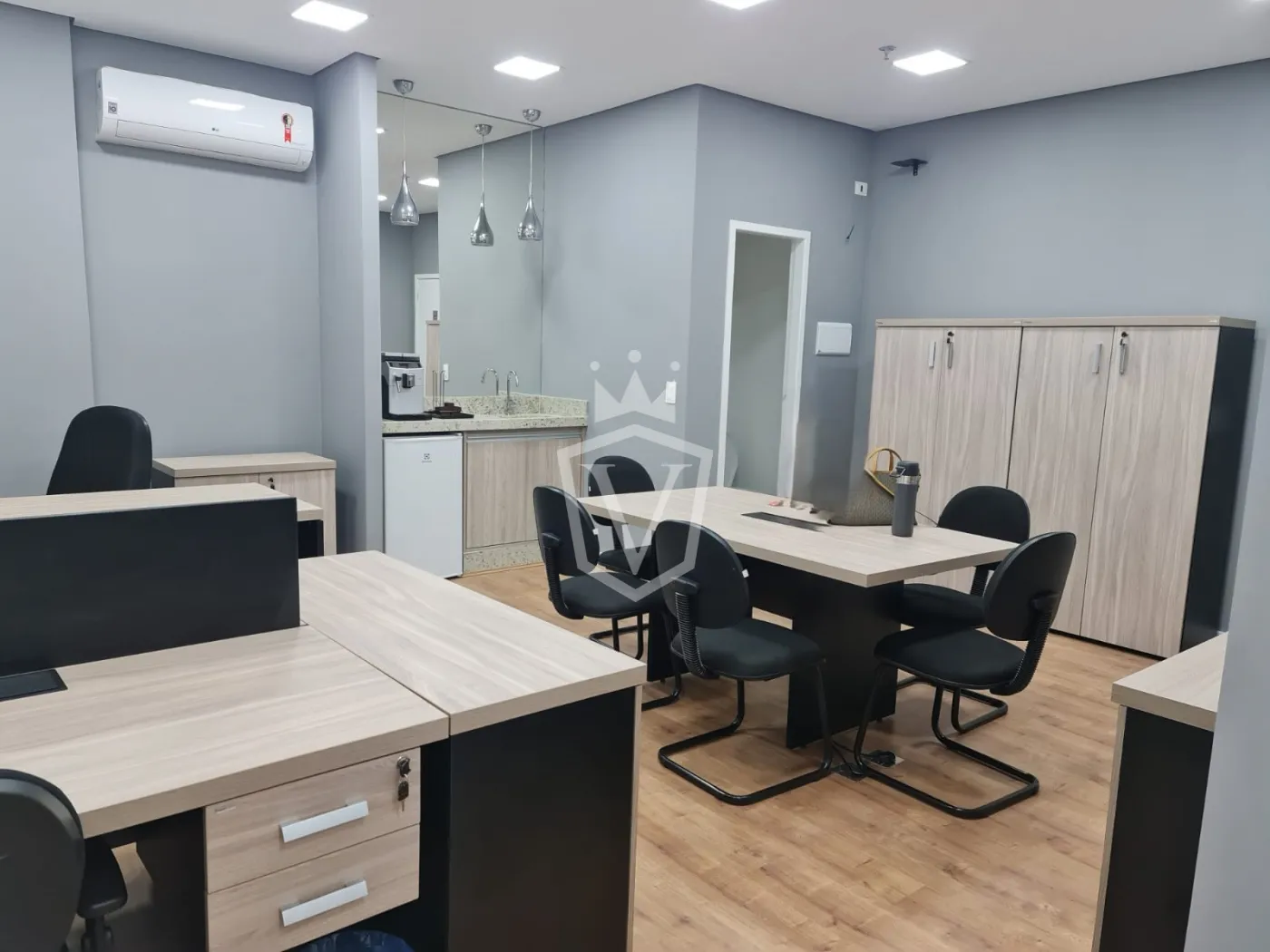 - Toda equipada com ar condicionado e móveis de escritório